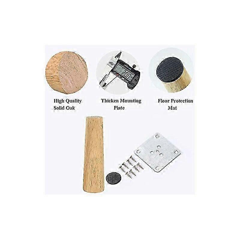 Solid design: It is made of high quality oak with a maximum diameter of 60mm.Strong material can bear heavier weight and can be used for a long time.Thickened mounting plate: The mounting plate is 2mm thick and 70mm wide.Enlarging the contact area can make the carrying capacity stronger and more stable.Floor protection mat: Made of high-quality rubber, soft and wear-resistant, it can move furniture silently and protect the floor.Smooth surface: The surface has been treated with multiple layers, which is not easy to slide.The fine polish makes it burr-free.With screws: Adopting M4 x 20 stainless steel 304 screws with deep threads and uniform pitch, which makes the furniture more stable and not shaking.