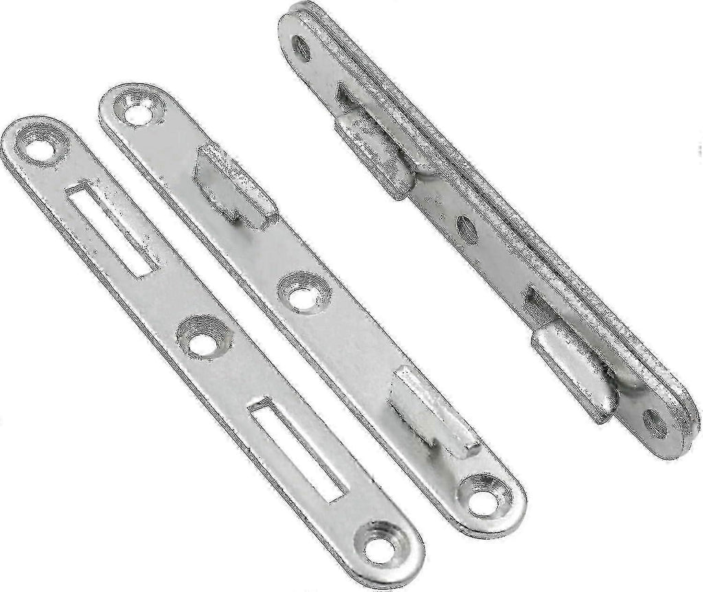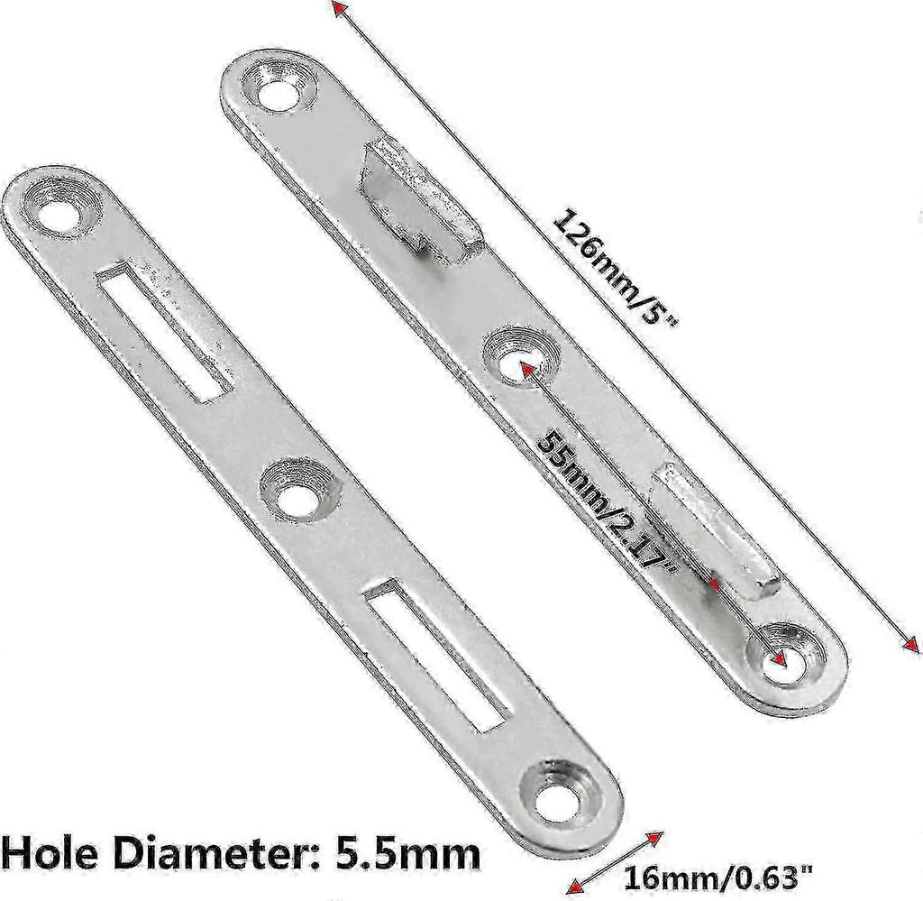 Made for connecting wood side rails to the head board and foot board of your bed. Made from Galvanized Steel designed with teeth to hold with strength. Easy installation, just attach wood side rails to your bed or other furniture. These are great for repairs or for making your own bed. Package Content: 4 x 5 Inch Round Bed Hook(4 male and 4 female piece), Screws are included here.