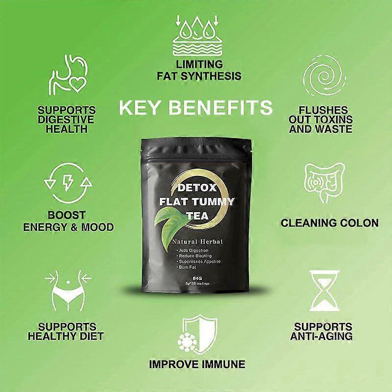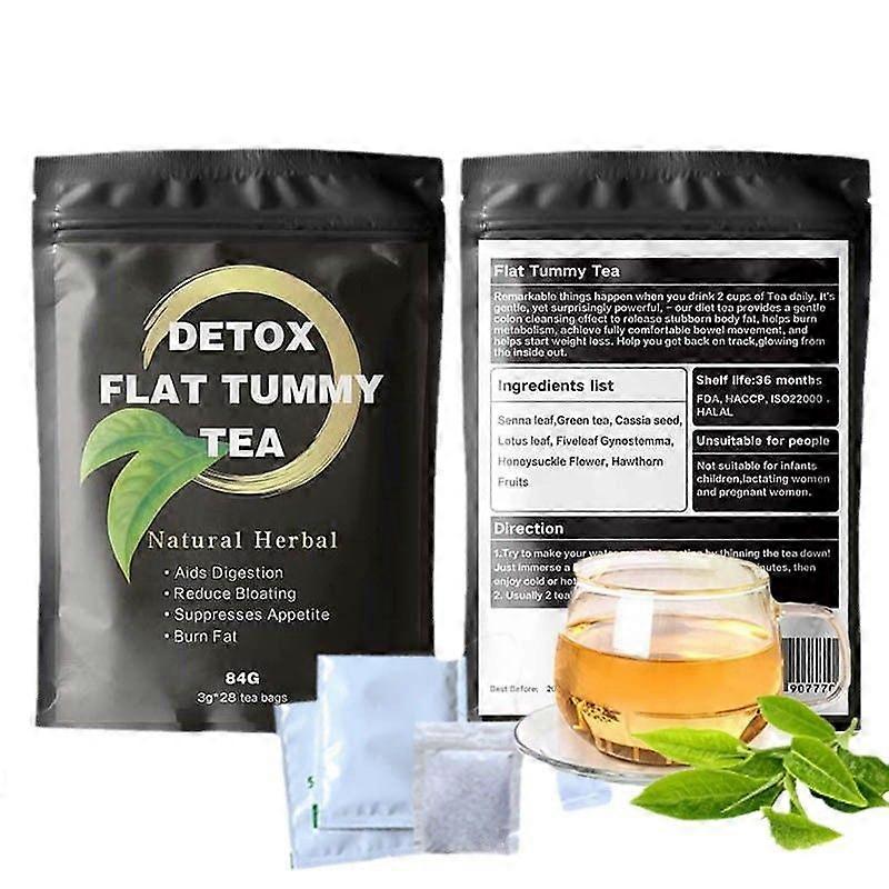 Detoxification and Weight Loss: This type of tea often contains a variety of herbal ingredients, such as green tea, lotus leaves, cassia seeds, etc., which help boost metabolism and help the body eliminate toxins, while potentially helping to reduce weight and belly fat. Promotes Digestive Health: Some ingredients in tea may help improve the function of the digestive system, reduce bloating and indigestion, and thus help achieve a flat belly. Convenient Use: Each box contains 28 individually wrapped tea bags, each with 3 grams, just enough for a day's drinking. This design makes it very convenient to carry and use, suitable for daily drinking. Please note that the effects of such products may vary from person to person, and it is recommended to consult a medical professional before using any weight loss product. At the same time, maintaining a healthy lifestyle, including a balanced diet and adequate exercise, is essential to achieving long-term health goals.