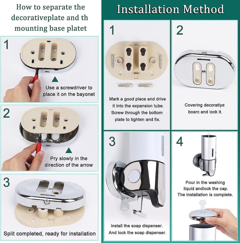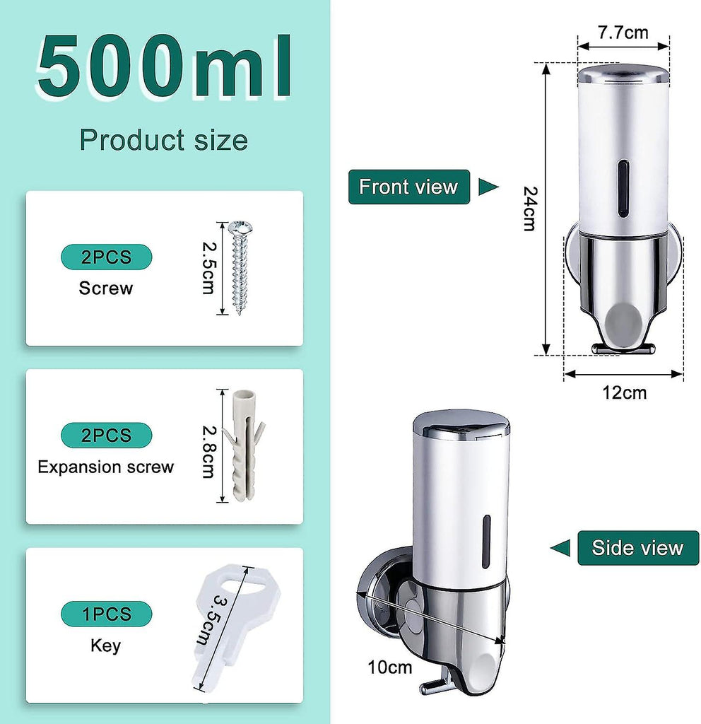 Wall soap: The wall soap is easy to install and use. Use the product screws (supplied) to secure it to the wall. This bathroom soap rack is a stable wall mount that won't come off easily and lift your space. Large Capacity: This large capacity soap rack will clear your shower bottle clutter and keep your space neat. tidy and organized. The large 500ml capacity will save you valuable time and frequent refills, allowing you to buy your favorite liquids in bulk to save costs. The wall-mounted manual soap is perfect for bathrooms, showers, kitchens, restaurants and hotels Push - pull design: Push - pull soap adopts the principles of human mechanics. Place your thumb and the other four fingers gently pull the T-bar. Fill the dispenser with soap, shampoo, makeup water or conditioner, sanitizer, then push the dispenser with a lever. Visible line of sight: The hand soap's line of sight design can clearly see the encrustation of the remaining liquid, which facilitates timely replenishment. The durable t-lever easily dispenses the right amount of soap, shampoo or conditioner. The amount of liquid is approximately 3 mL per serving (when taking a solution such as shampoo or shower gel, the normal required amount is achieved in one action).