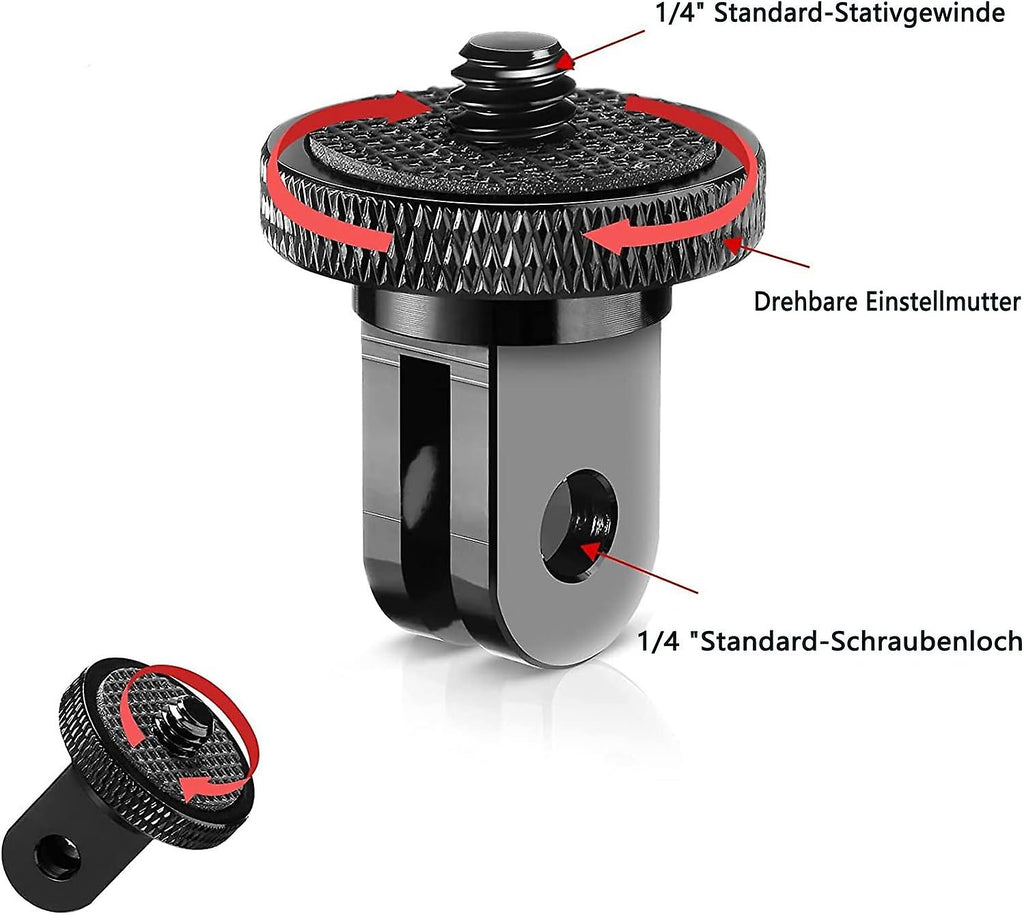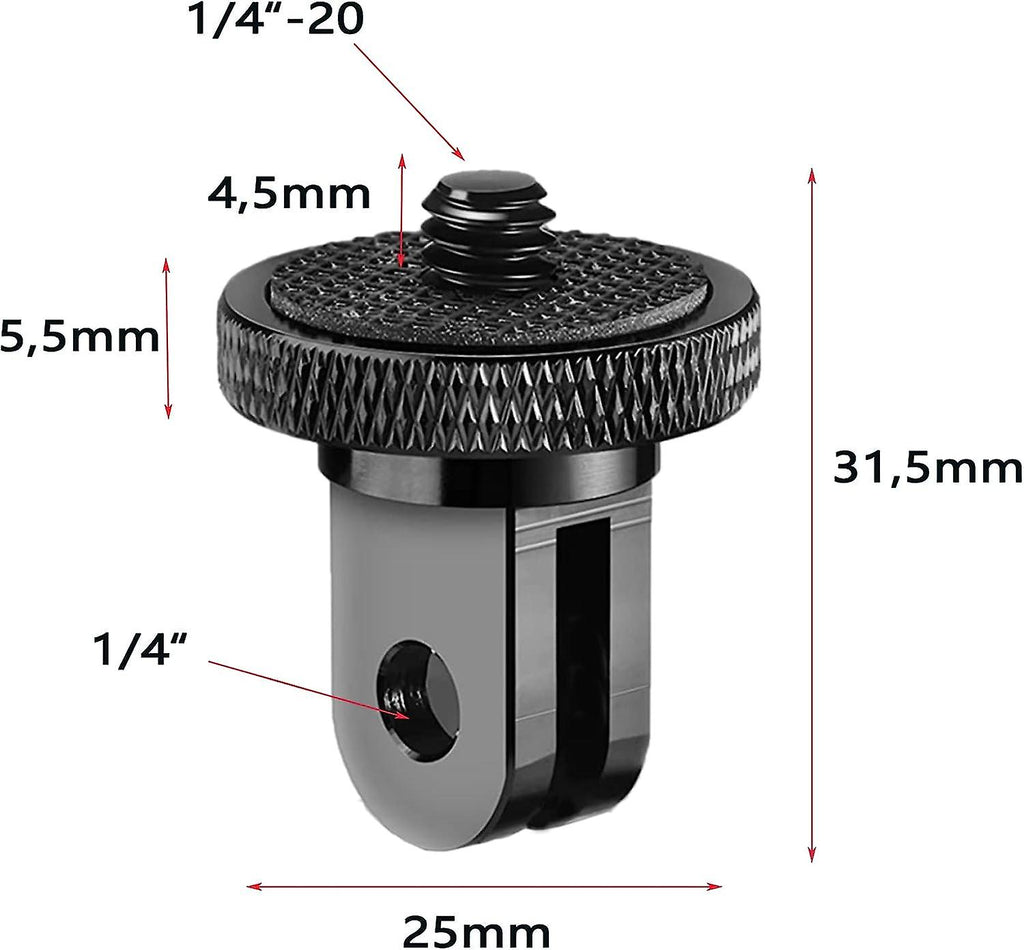 Aluminum 1/4" Threaded Tripod Mount Adapter Tripod Mount For Gopro Insta360 Sony Sjcam Sj4000 Series And Other Action Cameras 2pcs (generation - Black