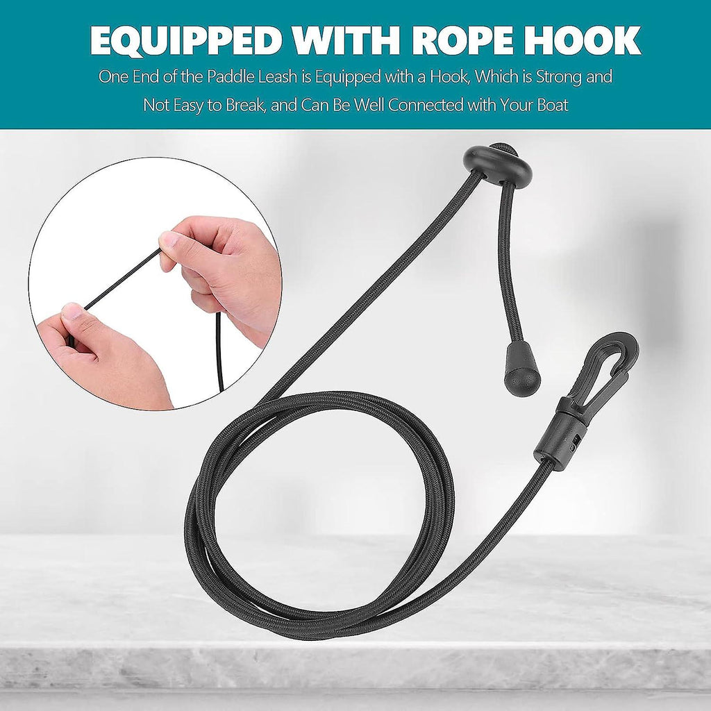 The paddle board leash is equipped with a rope hook, which can be used to tie the paddle or fishing rod to avoid accidentally washing the paddle boat. Strong and DurableThis paddle leash is made of high-quality rubber, which provides better toughness and friction resistance. Therefore, it is very strong, durable and has a long service life. Convenient to ConnectThis paddle strap with hook is convenient for you to connect what you want. In addition, the high quality of the paddle line is very durable. Excellent Design The rowing rope is designed as black elastic rope and equipped with a rope hook, very convenient and practical. This bungee cord can be worn with any other paddle, very stylish, suitable for paddlers, kayaking oars, small boats, canoeing and so on.