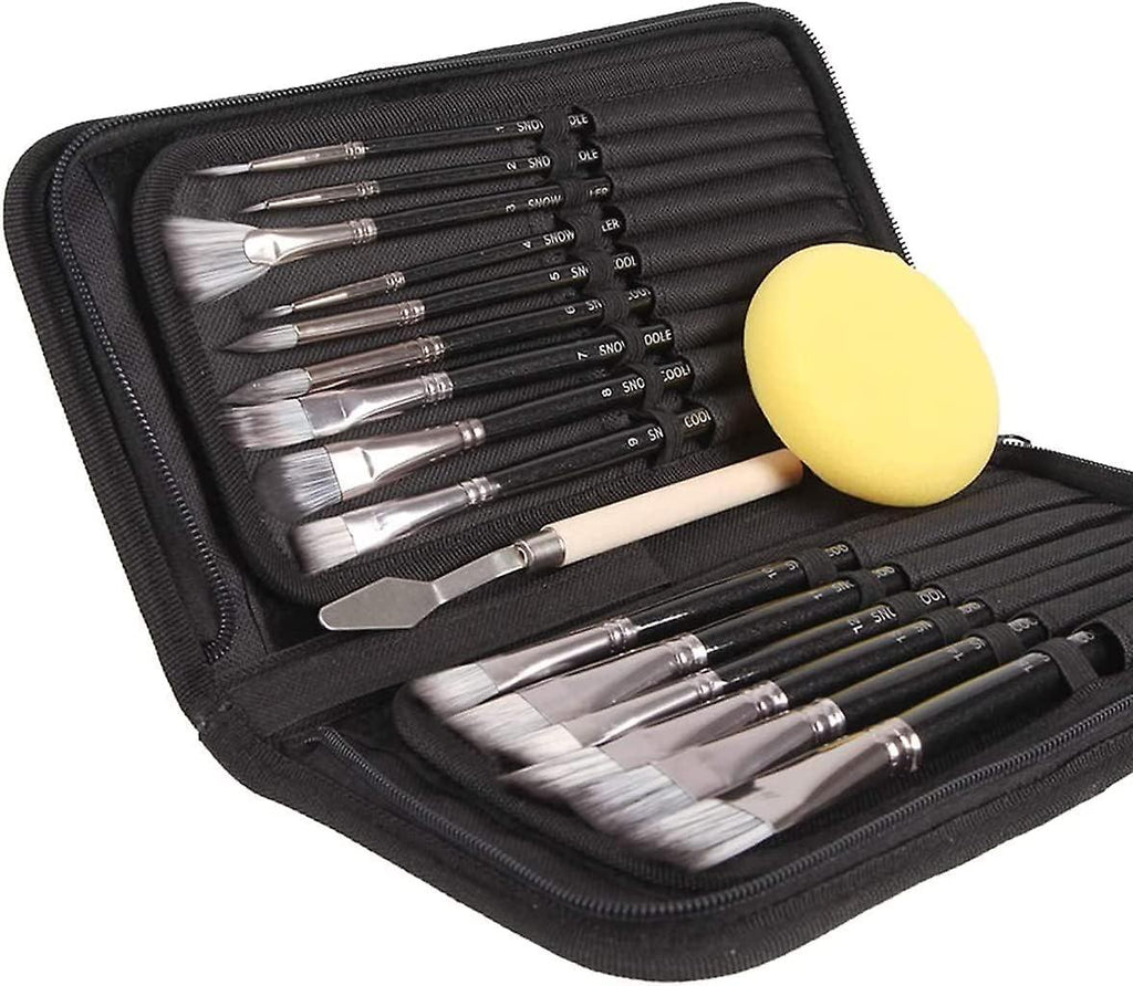 Artist Brush Set With 15 Brush Sizes For Painting. Contains High Quality Nylon Hair And Utility Knife, 1 Piece Black Sponge (cross-border 15 Canvas Se