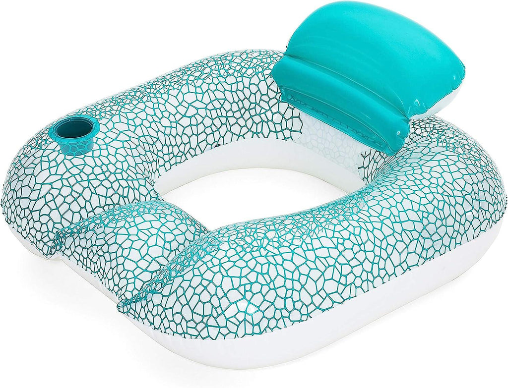 Size: 102 x 94 cm Fully adjustable folding cushion as 1 cup holder Backrest converts to seat cushion, 1 cup holder Durable PVC Inflates quickly, easy to close transport and store Contents: 1 air mattress, 1 repair patch