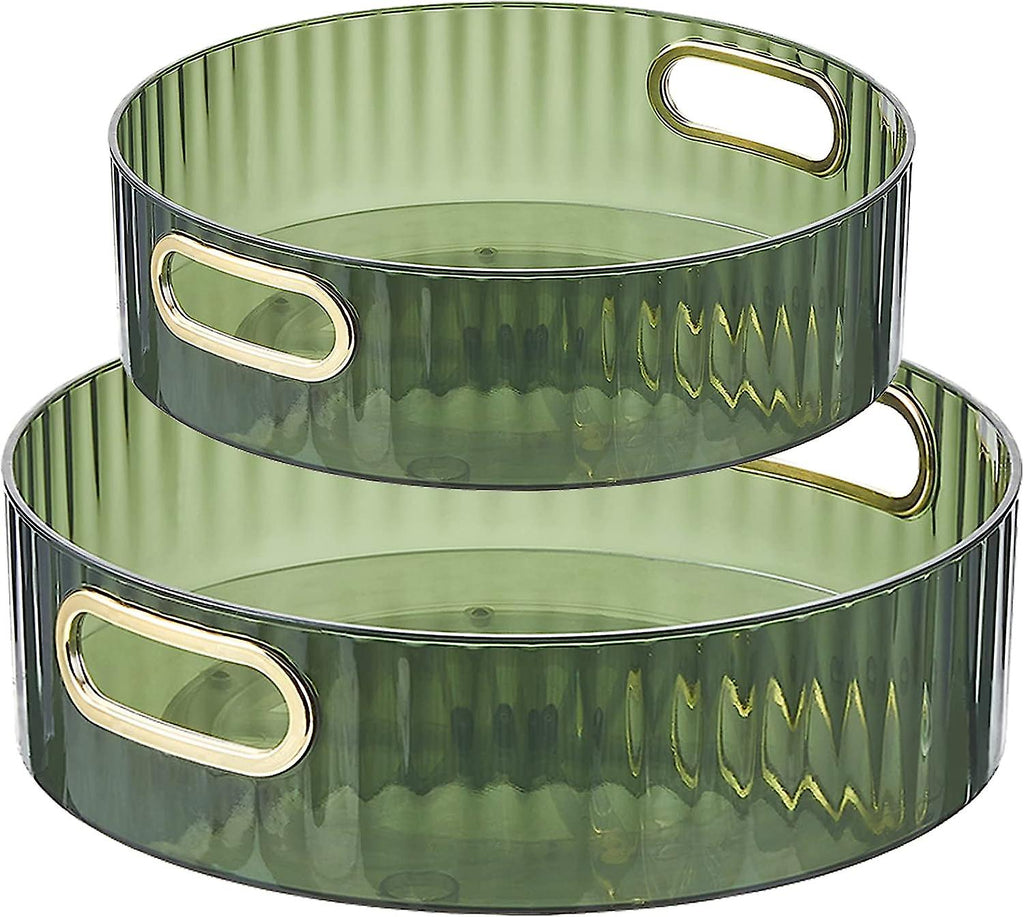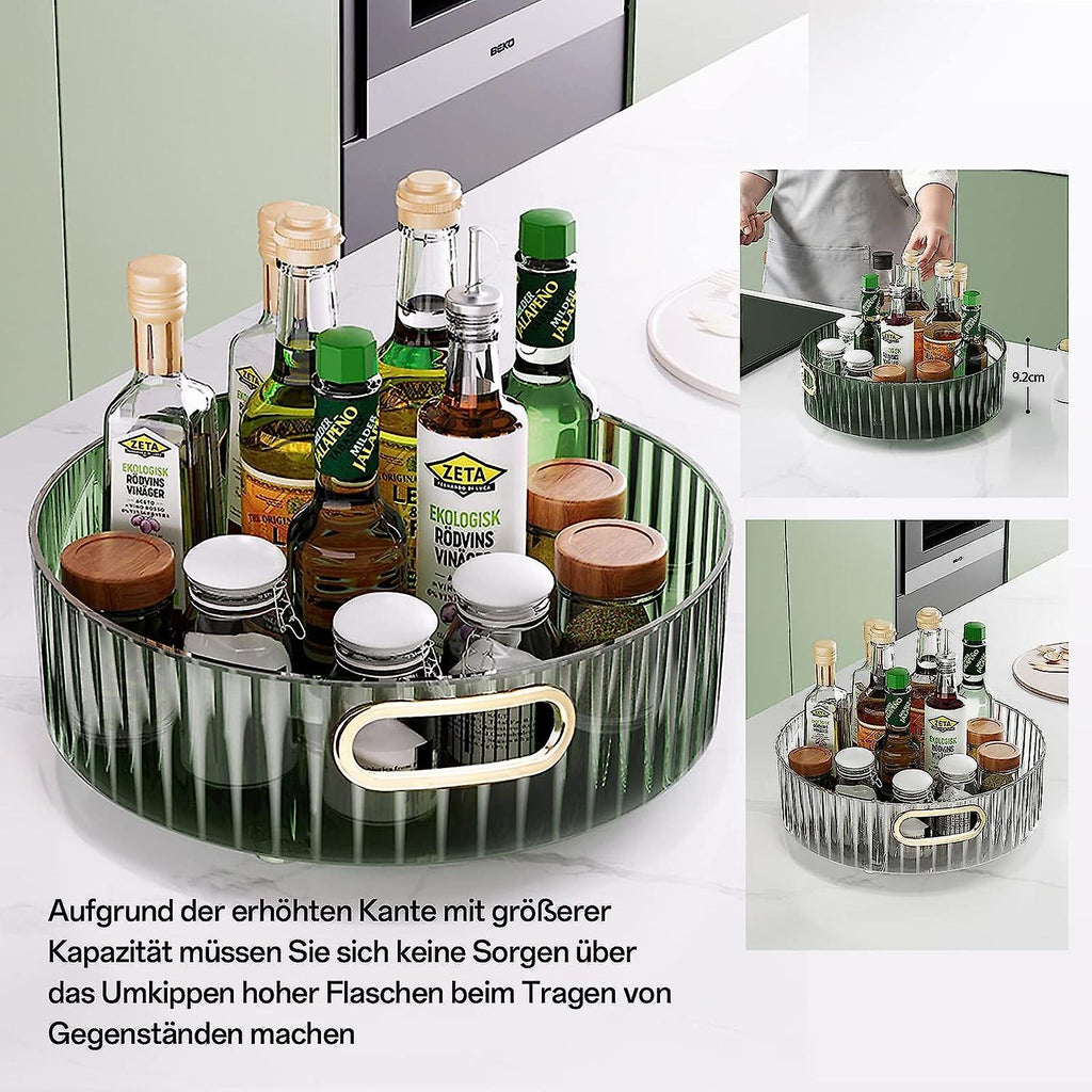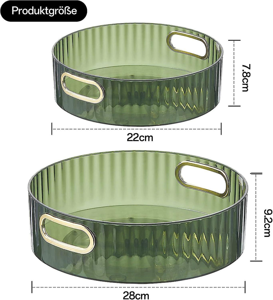A small round spice rack standing with a diameter of 22cm and a large round rotating spice rack with a diameter of 28cm, transparent white and transparent green optional The raised edge (the height is 9.5cm) The raised edge of the rotating shelf kitchen prevents your items from tipping over while rotating, and the 360 degree rotation is more accessible The kitchen gadget rotating kitchen cabinet organizer is with Stylish and luxurious look and two convinniet handles: The rotating kitchen spice rack is designed with two handles on both sides for more convenient use Multifunctional turntable: The rotating top kitchen rack corner can be used for storing cosmetics in the bathroom , pantry organizer in the kitchen corner shelf, beer and drink in the refrigerator storage, candy and fruit can be used in the living room; You can also use it as a kitchen spice organizer storage, refrigerator organizer, spice carousel The plastic material of rotating spice cabinet is transparent, does not rust and is easy to clean: It is not only a practical household helper for your Kitchen and home, it also helps you save more space for your kitchen, bedroom, refrigerator, living room, bathroom and makes your home look cleaner and more beautiful: It is not only a practical household gadget for your kitchen and home, it helps Also, you can save more space for your kitchen, bedroom, refrigerator, living room, bathroom and make your home look cleaner and more beautiful