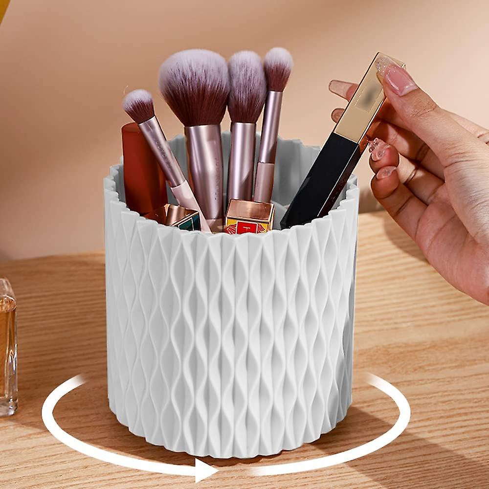 The bottom of the makeup brush box is equipped with a base that can be rotated 360 degrees to make the items in the box easier. The bottom is not easy to slip, making it more convenient to use. You don't have to move the box and without scratching the desktop. High quality material The cosmetic storage box is made of high-strength PP material, which is not easy to deform, and the edges are smooth. The stylish appearance, the diamond-shaped curve structure is practical and beautiful, making your desktop more artistic -30 makeup brushes can be stored. You only need one storage box to store your daily makeup tools together to keep your desk tidy. 5 Grid ClassificationThe interior of the cosmetic storage box is divided into 5 grids, which can be used for storing various cosmetics. You can store cosmetic brushes, lipsticks, eyeliner, mascara and other items. In addition, it can also be used as a pen holder to place various study materials, or used in the living room to store remote controls, scissors and other small items. Easy to Clean The material of this cosmetic organizer is smooth and easy to clean. It can be scrubbed on the surface of the wet cloth or rinsed with water. The storage box can be used for various small items, such as dressing tables, desks, toilets and living rooms.