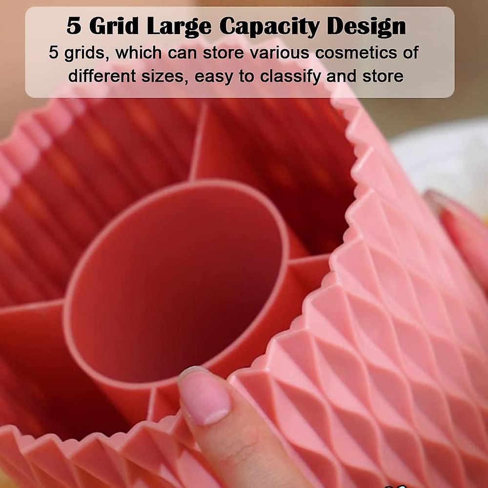 Makeup Brush Holder 360 Rotatable Makeup Organizer 5 Grids Multifunctional Makeup Brush Makeup Storage Box Workbench Makeup Cabinet Display Cabinet (w