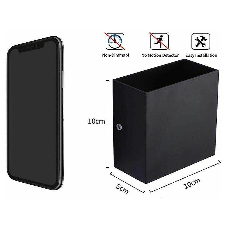 Fashionable simple design The modern wall lamp has a square shape with high-quality aluminum material, which is durable and easy to clean. The design is simple and elegant, suitable for all kinds of decoration styles. Surface paint treatment highlights the texture and is not easy to oxidize, does not fade. Upgraded LED light source: This wall light uses advanced COB light processing technology ( chips on board). Good heat dissipation effect, uniform lighting and energy saving. Warm white lamp beads provide softer light without glare to protect eyesight. Low power consumption, lifespan up to 50,000 hours. Product features: This lamp is made of aluminum and the light source is LED lamp beads, which saves electricity, Save energy and protect the environment. Dimensions: Length: 10 cm, width: 10 cm, height: 5 cm Voltage: AC85v~265v Power: 6W Color: Black Lamp beads: 2*COB Lumen: 550- 580 lm Weight: 0.28 kg Color temperature: 3000K Light color: warm white Easy installation: Wall mounting is very easy. The package includes mounting accessories and installation instructions. For safety, installation by an electrician is recommended. Versatile use: The LED wall lamp can not only light up, but also have a very good decorative effect achieve. Suitable for living room, bedroom, bathroom, kitchen, staircase, hallway, exhibition hall, bar, terraces, villas, balconies, halls, stairs, home, restaurants, hotels, porches, etc. It is very beautiful and elegant. Delivery quantity: Quantity: Two pieces Height: 5.0 cm Weight: 0.28 kg Power: 6.0 W Electrical voltage: 265.0 volts Material: aluminum Light color: warm white