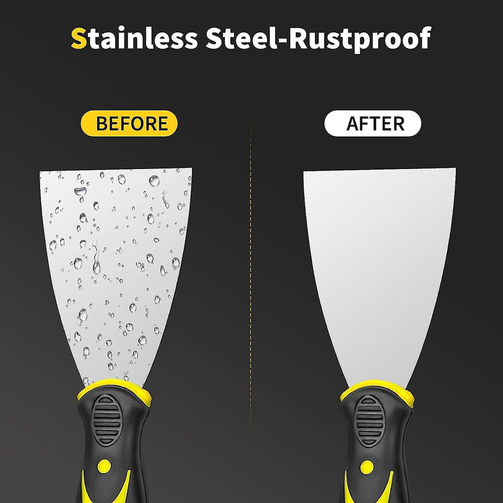 Putty Knife, 4 Piece Shoulder Knife Set (2, 3, 4, 5 Inch), Stainless Steel Paint Scraper, Tape Knife Tool For Drywall Repair, Wallpaper Removal, Putty