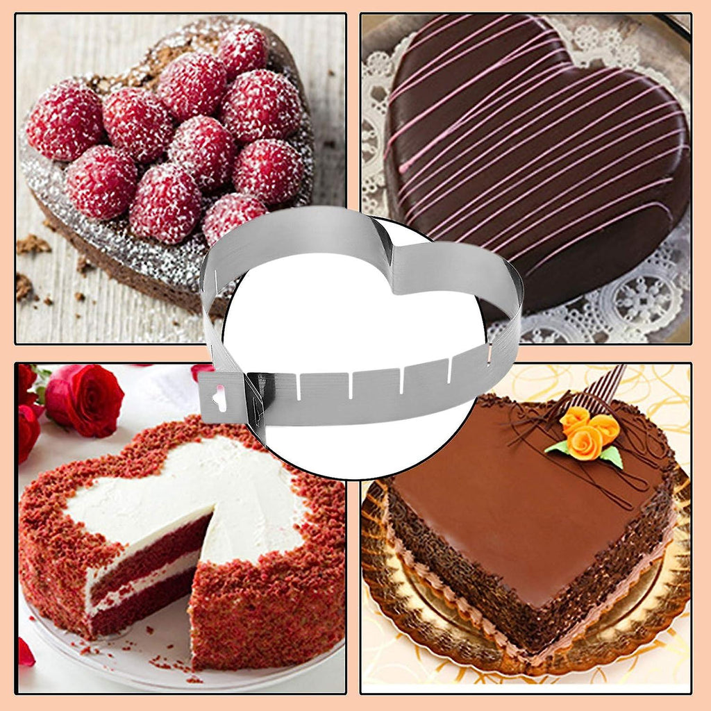 Reusable Mousse Ring Adjustable Mousse Ring Stainless Steel Mousse Mold Heart Shaped Baking Ring For Cake Decorating Pizza Cookie Baking Accessories (