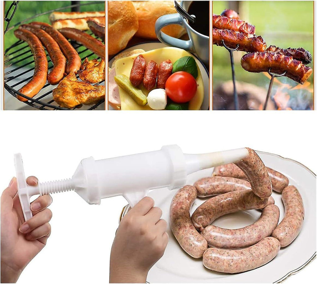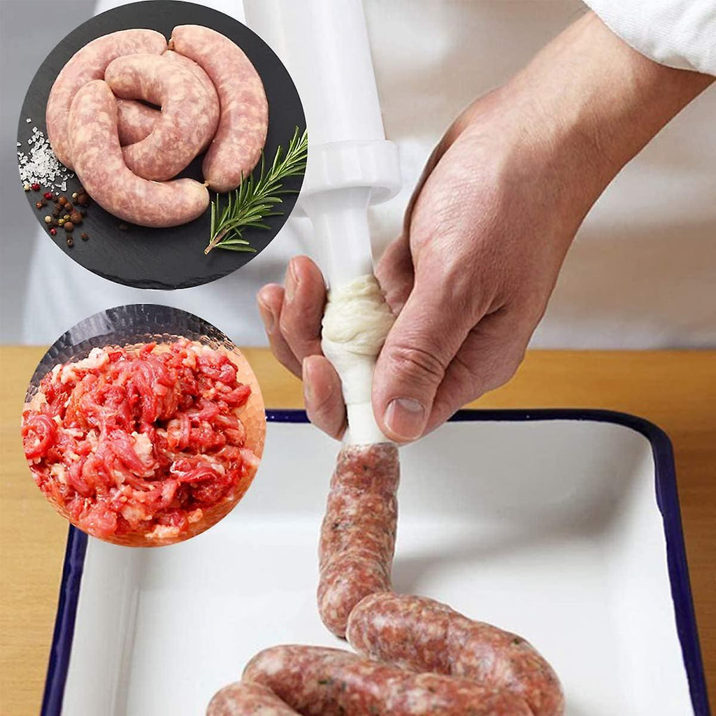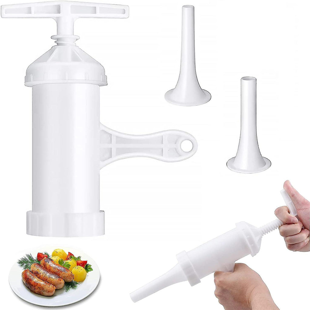 The sausage filling machine is suitable for many occasions, such as parties, festivals and family gatherings. It can help you cook a variety of delicious sausages and cook delicious meals with your family and friends. HIGH QUALITY MATERIALOur sausage filler tubes are made of high quality plastic , odorless, non-toxic, safe and hygienic, does not rust, can come into contact with food and can be reused. EASY TO USEThe sausage stuffer tool is push type, the handle design is ergonomic, comfortable and labor-saving. All you have to do is prepare the ground beef, select the funnel you want to use, place the ground beef into the sausage tube, and push the handle down to make the sausage. > MULTIFUNCTIONALOur sausage maker has 2 different size nozzles, 2cm nozzle can be used to make pork stuffed sausage, 1.5cm nozzle can be used to make stuffed sausage of lamb to satisfy your taste buds. Removable when not in use, storage does not take up space. CLEANING AND MAINTENANCEThis sausage machine is small in size, light in weight, easy to carry and space-saving; please wash it immediately after use and store it in a ventilated and dry place.