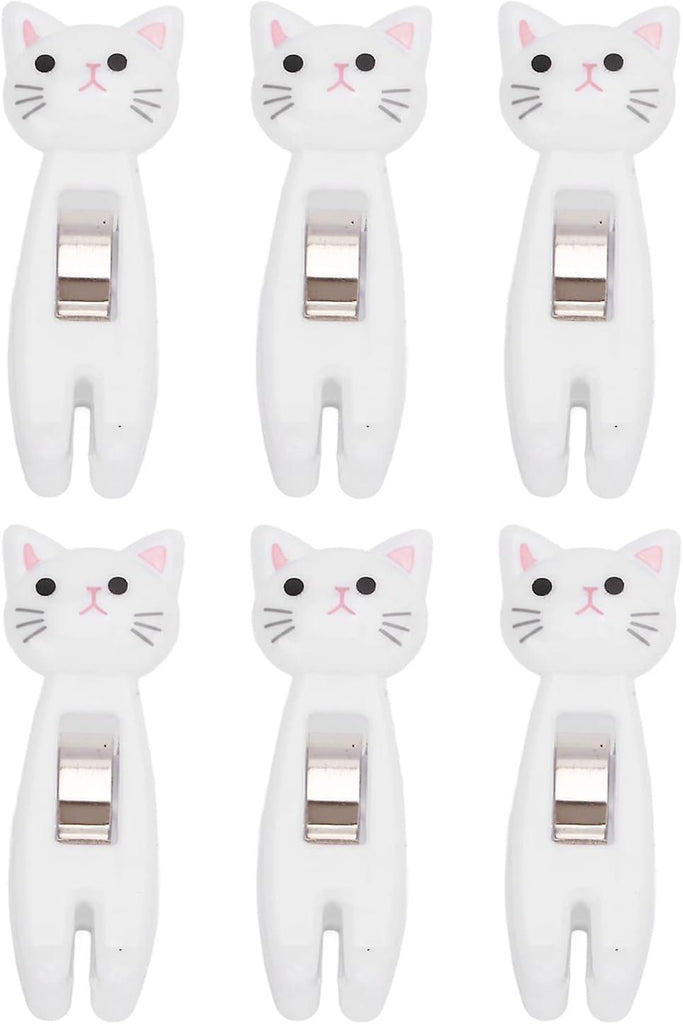 Set Of 6 Clothespins, Cartoon Cat Chip Clips, Cute Cat Clothespins, Metal Spring Food Bag Snack Clips (white 6 Packs)