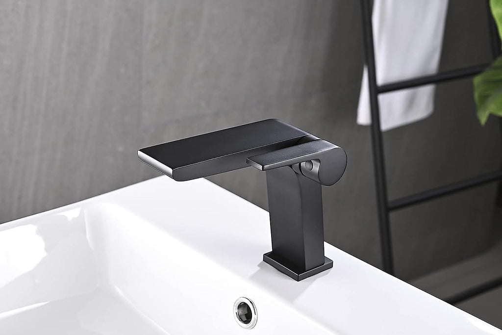 describe: Sink faucet material construction: solid brass valve, matte black surface, meets the requirements of low lead content < p>Modern Sink Faucet with Spout: The bathroom faucet gives the bathroom a modern upgrade with an elegant waterfall spout. A single handle highlights the convenience of water flow and temperature control Easy-to-install single-hole bathroom faucet for 1-hole or 3-hole installation with base plate, 3/8" water supply line< /p> Ultra wide modern flow for comfortable use