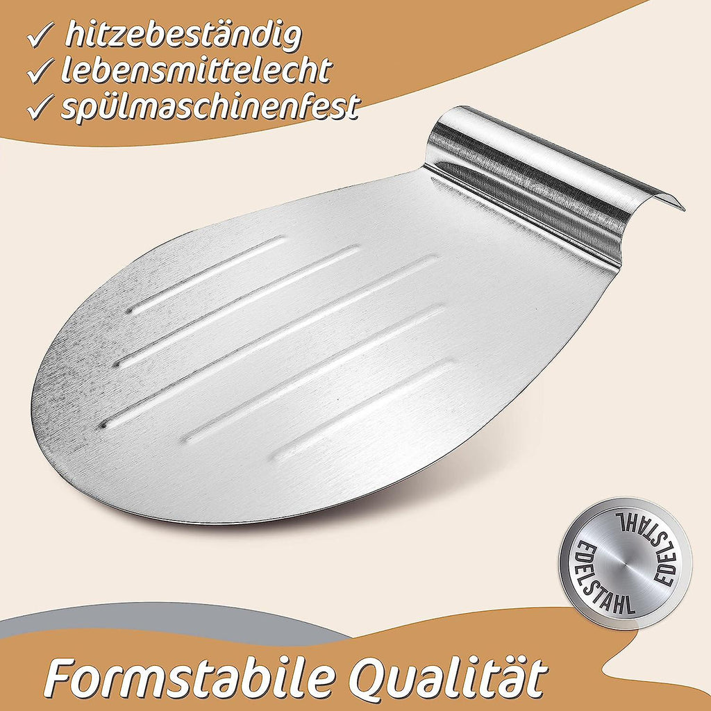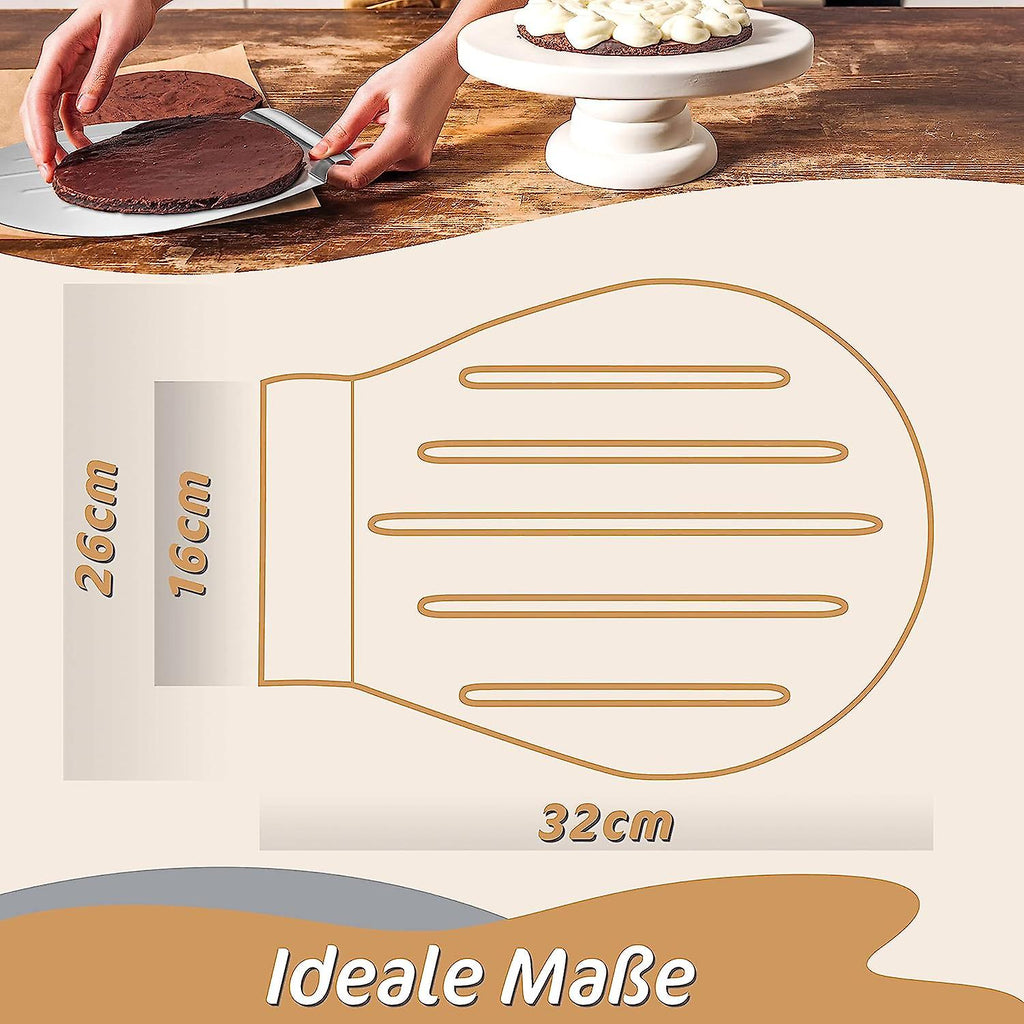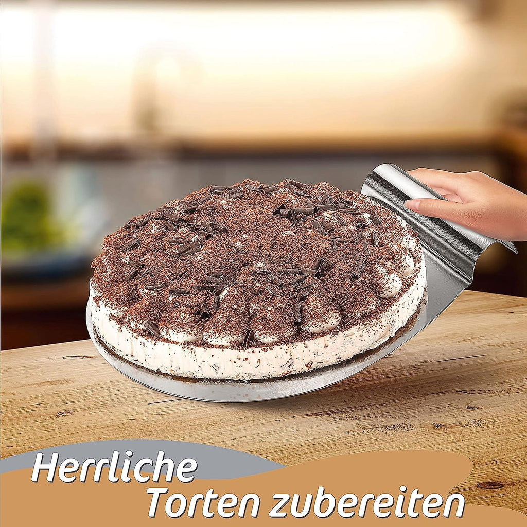 No more worrying about broken cakes and pie bases: With the practical cake shovel, you can remove the baked dough from the bottom of the pan effortlessly. In addition, it is possible to separate several layers of cakes and overlap them without breaking them. A perfect utensil for all amateur cooks and pastry chefs. Easy to lift all pastries because particularly flat: The very flat material of the pie utensil makes it easy to take cakes and tart bases from from the mold or the cake plate. The special shape that ends in a point at one of the edges is particularly useful. Safe transport of cakes, pies and pizzas: The stainless steel plate is extremely strong and is therefore ideal for transporting your creations from pastry shop. Thanks to its special shape, you can even carry the cake stand with two hands so that even heavy objects can be lifted safely. Present your preparations: The stainless steel cake server is can also be used as a pie plate. Present and serve your pastries to your guests. Particularly durable and easy to clean: Stainless steel pizza peel and pie peel, 100% stainless and of course dishwasher safe. German quality material without irregularities. Unlimited lifespan thanks to the use of stainless steel.