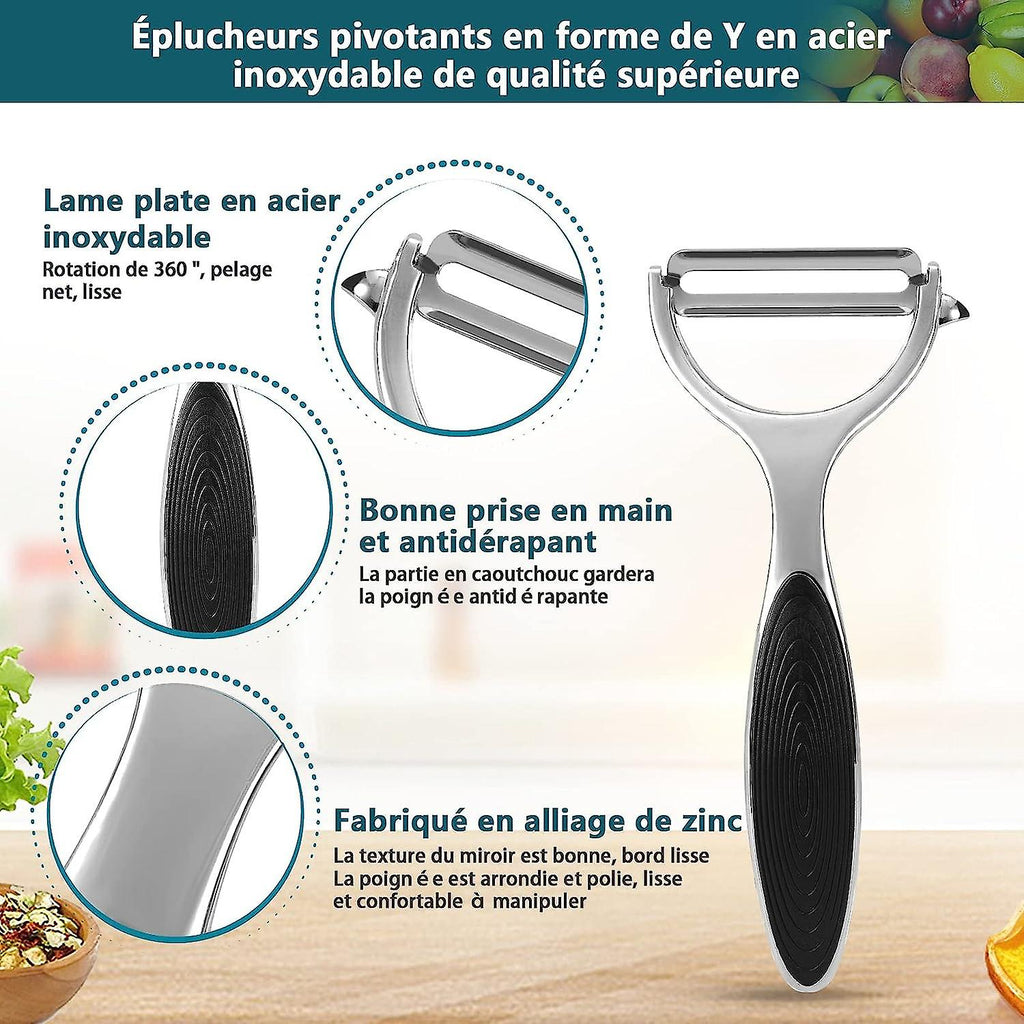 Multifunctional Peeler for Kitchen: With advanced vegetable peeler and fruit peeler, let all kinds of fruit and vegetable peeling easily solve. Dig-Design Y Peeler : A potato peeler with a cut-out design on the edge can dig the recessed parts of the potato. Good Grip and Control Peeler: The peeler part will keep your handle non-slip when your hands or peeler are wet. The Y-shaped blade holder can stably control the peeler so that the blade is evenly stressed and properly removes the skin from the fruit. High-quality material: This Vegetable Peeler from potatoes is made of high quality rust-free carbon steel which features a durable and anti-corrosion zinc alloy body, more dishwasher safe and easy to store. Easy peel and Time-saving: The wide and ultra-sharp rotary blade can maintain the minimum resistance when peeling. The potato peeler is very suitable for peeling fruit and vegetable peels, and will not be blocked by the peel, saving your time and effort.
