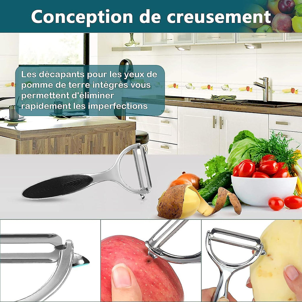 describe: [Multifunctional kitchen peeler]: Equipped with an advanced vegetable peeler and a fruit peeler, it makes peeling all kinds of fruits and vegetables easier. < p> [Peeler]: The edge of the potato peeler with notch is used to dig out the concave part of the potato. [Good grip and control of the peeler] : When your hands or the peeler are wet, the peeler part ensures that your handle remains non-slip. The Y-shaped knife holder ensures consistent control of the peeler and allows even force to be applied to the blades to peel the fruits properly. [High-quality material]: This potato Vegetable peeler is made of high quality material and high quality stainless carbon steel with a durable and corrosion-resistant zinc alloy body, which is more dishwasher safe and easier to store. Easy peeling and time saving: The wide and ultra-sharp rotating blade ensures for minimal resistance when peeling. The potato peeler is very suitable for peeling fruits and vegetables without blocking the peel, saving time and effort.