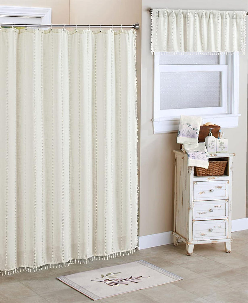 Unique stitching design: Bohemian farmhouse style shower curtain brings a beautiful look to your bathroom, creates a relaxed feeling in the room and refreshes your bathroom; Enough to become a bohemian farmhouse bathroom decoration, to meet entertainment and shower needs High quality thick material: This rustic linen shower curtain is made of durable polyester fabric. 230GSM (grams per square meter), weight about 1.1 pounds more than a normal 90GSM fabric shower curtain. Soft and comfortable to touch, smooth, non-wrinkling, non-drying and able to resist bathroom moisture. High quality, long service life Waterproof and quick-drying: A new waterproof coating that ensures that the unique shower curtains in your country stay fresh and clean. The upper reinforcement, anti-rust metal eyelets and anti-fading fabric are both practical and fashionable Product Attribute Specification: Weight:1180g Package contents: 1 set of linen cotton shower curtains Quantity:1 piece < b>Color: Material:Linen Cotton Product size:180L x 180W cm Opacity:Semi-transparent