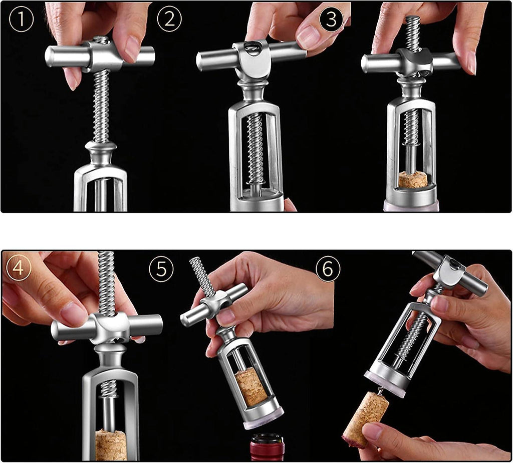 Material: zinc alloy, durable, finely crafted and sturdy, easy to clean by hand, not suitable for dishwasher cleaning. Application: This currently designed bottle opener is of exceptional design with professional quality in mind. The quality of the materials used is very good. It is very suitable for restaurants, bars, wine cellars, wine hotels and even allows your wine to have a professional location at home. Description: The classic bell-shaped bottle opener with original sharp threads is used for opening bottles with natural and plastic wine cork stubble. Simply screw the fusiform-shaped sharp thread into the wine cork and open the bottle by turning it clockwise and the best matched machine. There are no cork residues in the wine: the pointed snail can pass through easily and safely drill the wine cork without breaking or slipping sideways. Equipped with a convenient capsule lift to open the crown. Portable design: exquisite and compact, easy to carry, effortless, easy to open, enjoy wine with family and friends, suitable for different sizes.