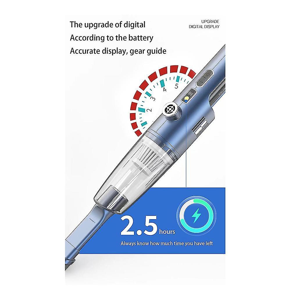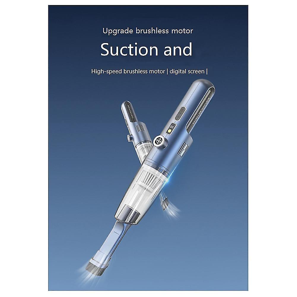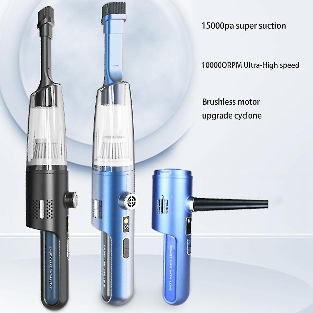 The high-power brushless motor has a long-lasting suction power that can quickly remove stubborn dust. 12000PA vacuum suction The high-speed drive fan impeller rotates, gathers the suction and instantly forms a vacuum vortex, and the dust is swept . Both suction and are more widely used, and it is easy to of corner of the car and home. Air volume enhancement paddles Unique design Up-dial in vacuum mode to increase suction power, and down-dial in blowing mode to enhance blowing force. Turn on the "Small Steel Cannon" mode, and all types of "crumbs" can be blown , making it a little expert in cleaning. Product Name: Dust Working voltage: 12V (upgrade brushless motor) Working current: 3A-8A Maximum output power: 100W Charging time: about 4-6H Material: ABS colour: black Package Contents: 1 x 1 x Dust Blowing Pipe 1 x Brush Blowpipe 1 x Swimming Ring Mouthpiece 1 x Air Mattress Mouthpiece 1 x Slim Mouth Blowpipe 1 x Flat Head Vacuum Tube 1 x Flat Mouth Brush 1 x Filter 1 x Dust Box 1 x Charging Cable Only the above package content, other are not included. Note: Light reflection and different displays may cause the color of the item in the a little different from the real . The measurement allowed is +/- 1-3cm.