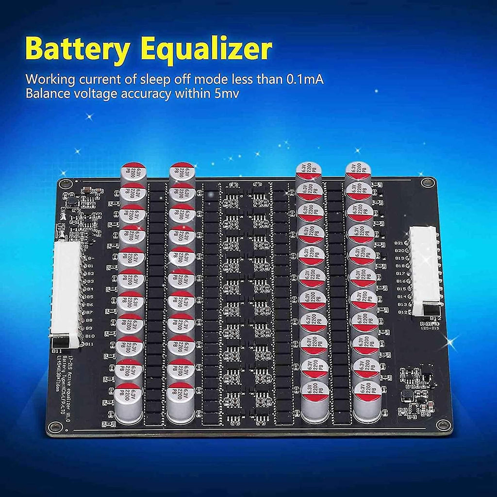 Working voltage 1.8V-4.5V, suitable for ternary lithium, lithium iron phosphate, lithium titanate.Working principle, the capacitor fit transfers the charge porter, and the balance board is connected to the battery to start the balance work. It adopts the brand new ultra-low internal resistance MOS, 2OZ copper thickness PCB, and the balance current is 0-5.5A. The more balanced the battery, the smaller the current. Reserve the wiring position of the sleep switch, the working current of the sleep power-off mode is less than 0.1mA, and the equalization voltage accuracy is within 5mv The quiescent current is about 12 mA, and it is recommended that the battery capacity should be 30-300AH for batteries With under-voltage sleep protection, the voltage will automatically stop entering the sleep state when the voltage is lower than 3.0V, and the standby power consumption is less than 0.1 mA.The appearance and color of different batches of products may be different, which will not affect the useAccessory Type: Battery AccessoriesModel Number: Acitive BMS boardBalance Current: 5A active balancerString: active balancerType: Fit Capacitor active balancerBattery: Lifepo4 Lithium Lipo LTO Battery active balancerType: 17S 18S 19S 20S 21Scolor:BlackMaterial:PCBPackage Contents:1 x Lithium battery balance boardOnly the above package content, other products are not included.Note: Light reflection and different displays may cause the color of the item in the picture a little different from the real thing. The measurement allowed error is +/- 1-3cm.