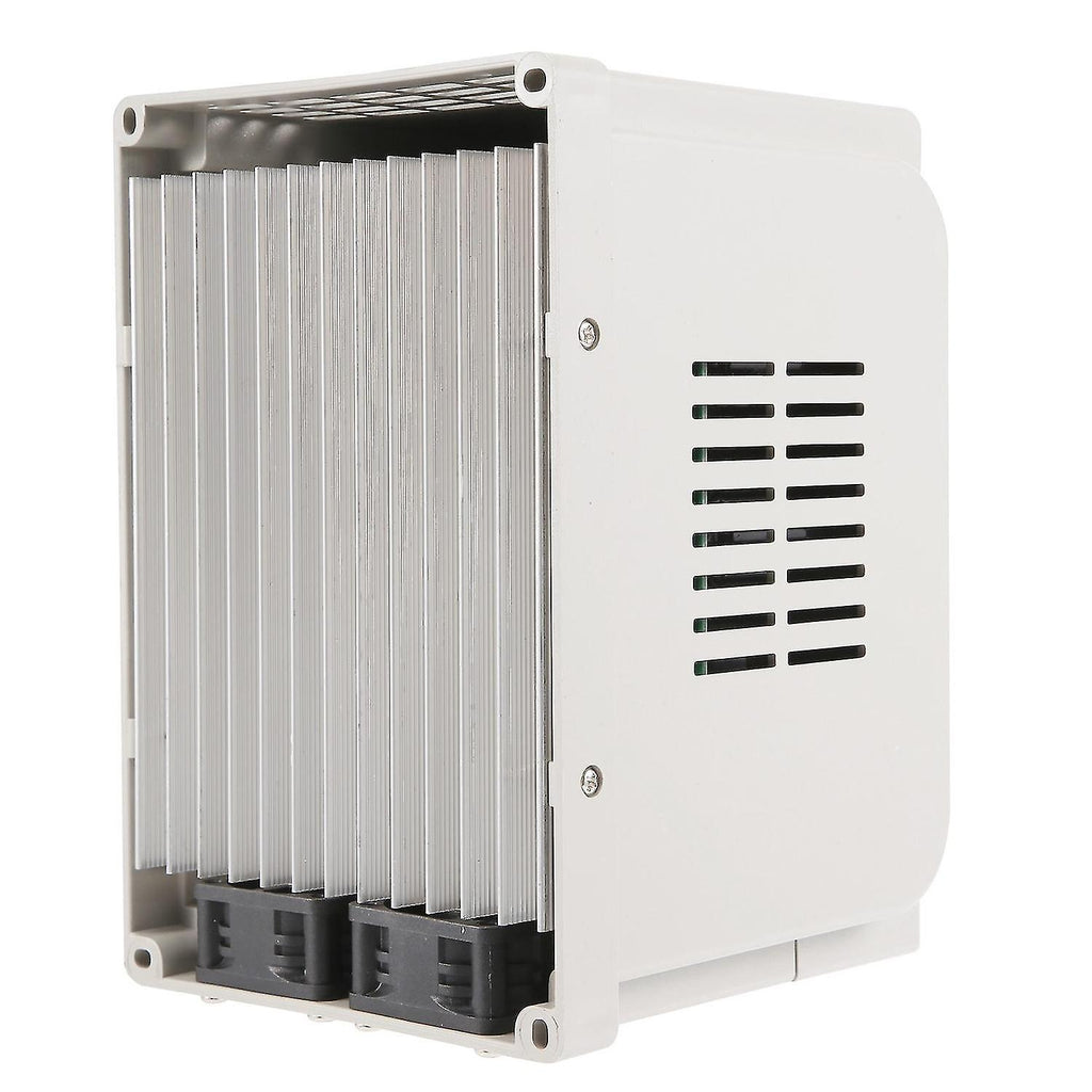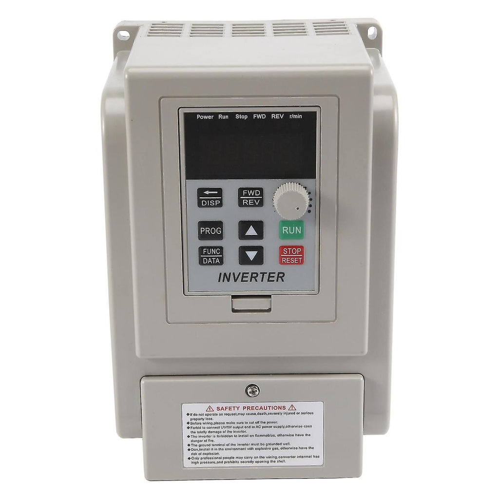 This VFD uses unique control to realize high moment of force, high precision and wide speed regulating range driving, with high performance. It has good anti-trip performance and to adapt to rough power, temperature, humidity and dust interference, greatly improved stability. By optimizing PWM control technology and electromagnetic compatibility, it satisfies users' requirement of low noise, low electromagnetic interference. Simple to operate and wire, connect to wires by screw terminals which are more convenient. Designed with heat sink for better heat dissipation. Power Source Phase: Single-phase color: White Material: plastic + metal Rated Voltage: single-phase/3-phase AC220V Power Supply Voltage: Low voltage Suitable Motor Power: 2.2kW Filter: Built-in filter DC Power Supply Type: Voltage type Control : V/F closed loop Output Voltage Adjusting : PWM control Rated Current: 12A Protection: Over-current, over-voltage, over-heat, under-voltage, short circuit protection Max. Output Frequency: 400Hz Size: 18*12.5*12.5cm/7.1*4.9*4.9in Package Included: 1 x Frequency Converter Only the above package content, other products are not included. Note: Light and different displays may cause the color of the item in the a little different from the real thing. The measurement allowed error is +/- 1-3cm.