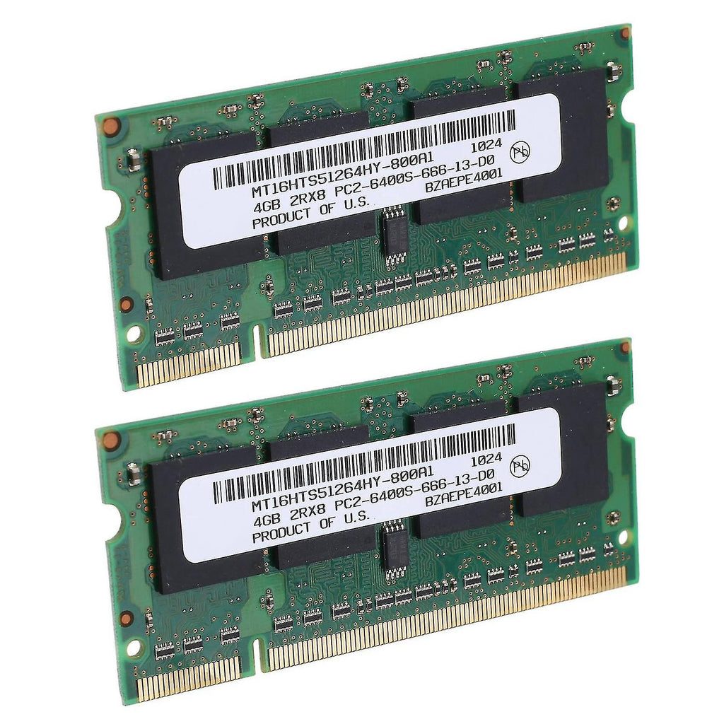 Model: DDR2 SODIMMCapacity: 4GBFrequency: 800MhzFunction: DDR2 200PINScope of application: laptopPins of Memory RAMSDDR for Desktop=184 pinsDDR for Laptop=200 pinsDDR2 for Desktop=240 pinsDDR2 for Laptop=200 pinsDDR3 for Desktop=240 pinsDDR3 for Laptop=204 pinsRead FirstThe Recognition of XP is around 3GBThe Recognition of Win 7 32Bit is around 2.26-4.5GBThe Recognition of Win 7 32Bit is around 8-16GBBefore purchasing rams, please confirm which model is suitable for your Laptop, usual models are as bellow:PC2 4200 = DDR2 533MHZPC2 5300 = DDR2 667MHZ (Compatible with DDR2 533MHZ)PC2 6400 = DDR2 800MHZ (Compatible with DDR2 667MHZ, DDR2 533MHZ)PC2 8500 = DDR2 1066MHZThe appearance and color of different batches of products may be different, which will not affect the usesize: 7 x 3cmMaterial: PCBcolour: greenPackage Contents:2 x RAMOnly the above package content, other products are not included.Note: Light and different displays may cause the color of the item in the picture a little different from the real thing. The measurement allowed error is +/- 1-3cm.