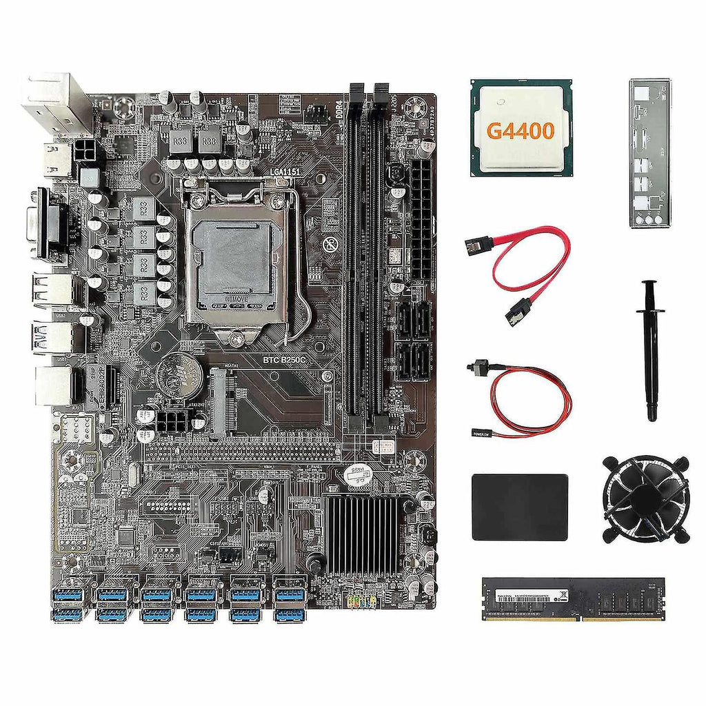 B250c Eth Mboard 12usb+g4400 Cpu+ddr4 8gb Ram+128g Ssd+fan+sata Cable+s Cable+ Gre