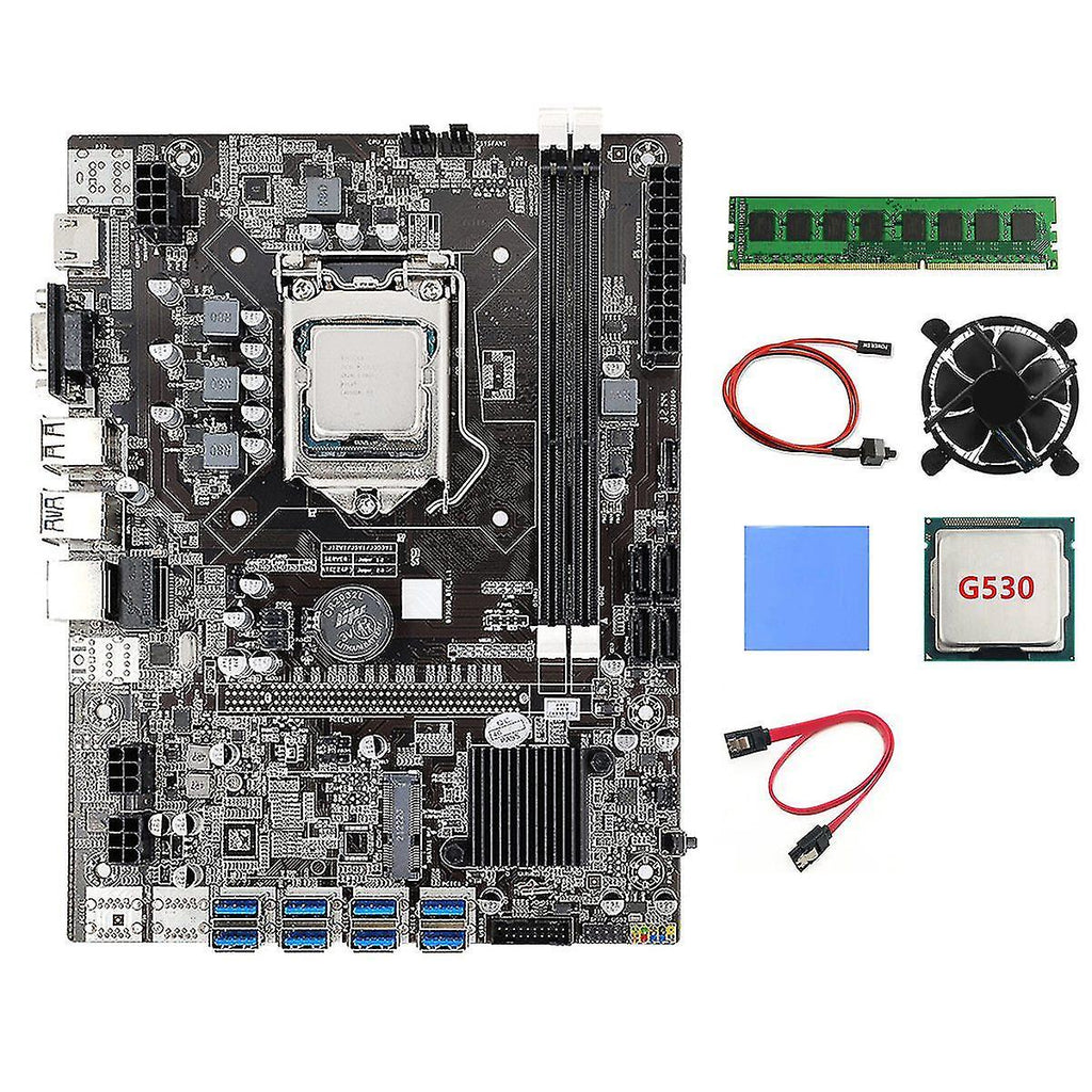 B75 8usb Btc Mboard+g530 Cpu+4g Ddr3 Ram+fan+ Pad+s Cable+sata Cable 8 Pcie A115