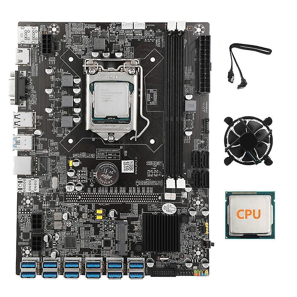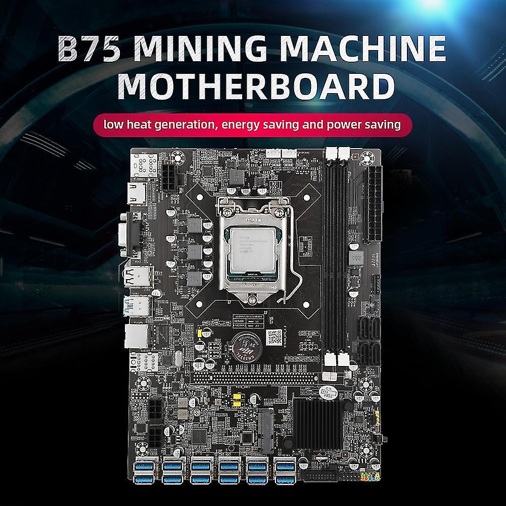B75 Usb Btc Mboard+om Cpu+ing Fan+sata Cable 12 Pcie To Usb Gpu A1155 Ddr3 Sl
