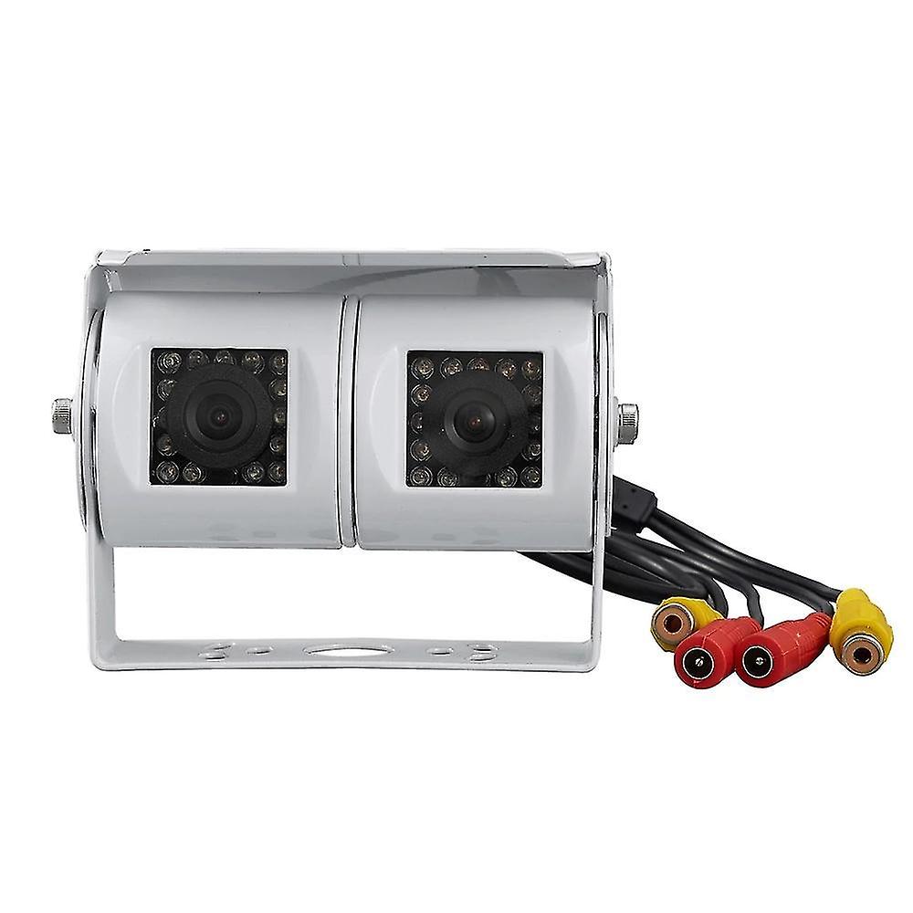 Car Dual Lens Reversing Camera Rv Backup Camera Twin Adjustable,White