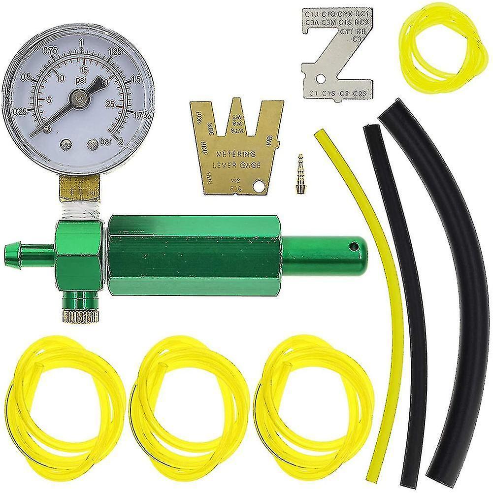 Used to test whether for Walbro and other 2 cycle carburetor leaksMeasurement range:0~100kpa(0~15psi)Fit for Walbro 57-21 Stens 705-020Replaces for ZAMA ZPG-2Replaces for Tillotson 243-504Material:Metal + plasticcolour:greenPackage Contents:1 set CarburetorOnly the above package content, other products are not included.Note: Light shooting and different displays may cause the color of the item in the picture a little different from the real thing. The measurement allowed error is +/- 1-3cm.