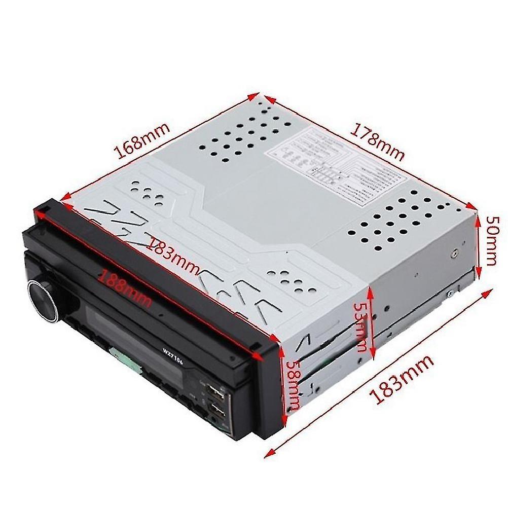 1. 7-inch high-definition touch screen, 800*480 resolution (default resistive screen for button models / capacitive screen for touch button models) 2. Support Bluetooth hands-free call and song playback function 3. THE NEW CHIP SUPPORTS ANDROID MOBILE PHONE INTERCONNECTION, DUAL-SCREEN INTERACTION, MOBILE PHONE SUPPORTS VERSION 12.3.1, CANNOT SUPPORT OR ABOVE VERSION 4. Support FM radio, AM function optional 5. Support playing , , pictures, etc. in USB, TF card, full- decoding, HD 1080P playback 6. Support steering wheel control (the square control line is one, if there are buttons on both sides of the car steering wheel, the same square control line can be connected) packing list:1pcs Car Player MP5 +1pcs Single Ingot Telescopic Player+1pcs remote control+1pcs Power cord+1pcs Speaker cable+4PCS screw+2pcs Installation tool+1English manual Colour:black Material:Plastic + Hardware Package Contents: 1set x Portable Car Integrated machine Only the above package content, other products are not included. Note: Light reflection and different displays may cause the color of the item in the picture a little different from the real thing. The measurement allowed error is +/- 1-3cm.