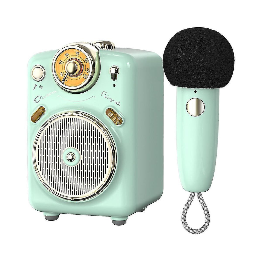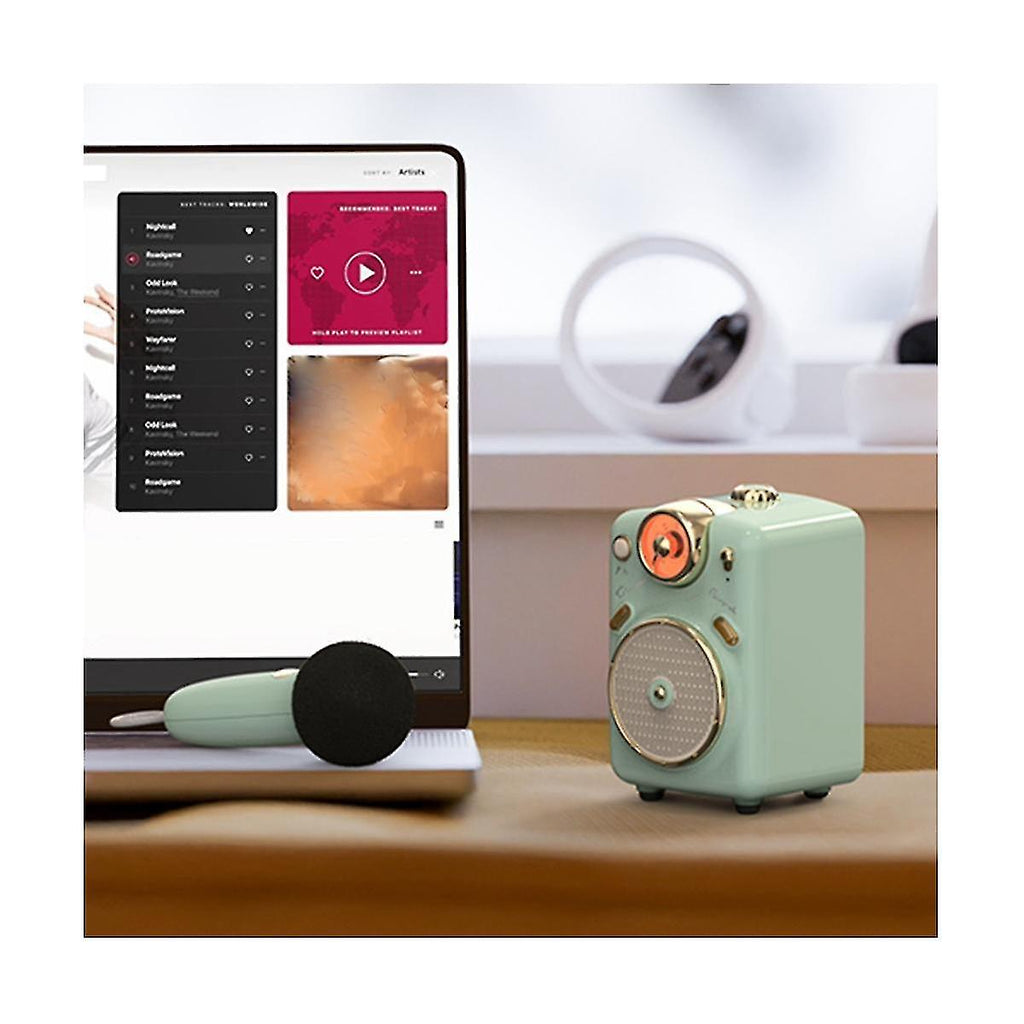 [Karaoke Freedom]:The karaoke speaker is small and portable, and you can carry your singing voice with you Whether you are having a family gathering , or singing with friends outdoors, the sound quality will you, just like singing in a KTV. [Great gift ]:The karaoke speaker is suitable for girls, , friends, teachers, students, it is a perfect gift for birthday, 's Day, Children's Day, Thanksgiving Day, Christmas or other festivals. [How to use the karaoke function]: pair the device via Bluetooth, turn on the microphone, and the microphone will automatically pair with the speaker. After the connection is successful, the signal light on the rear panel of the speaker will , and the microphone will be available for use. [Durable and Durable]:The karaoke speaker can play continuously for 10-12 hours at maximum volume, and can be with the included USB cable. Category:speaker Input/Output:USB Play function:radio Remote control:no Communication : Bluetooth Speaker Type:Portable Colour:Green Material:Metal Package Contents: 1 * packing bag 1 * gift box 1 * audio 1 * lanyard 1 * TYPE-c cable Only the above package content, other products are not included. Note: Light reflection and different displays may cause the color of the item in the picture a little different from the real thing. The measurement allowed error is +/- 1-3cm.
