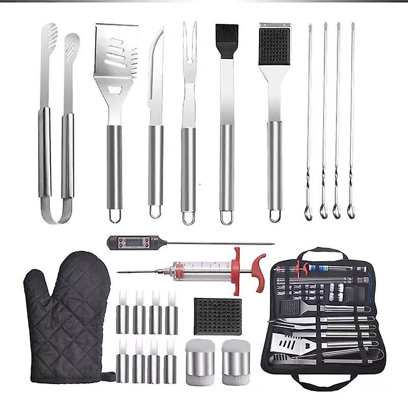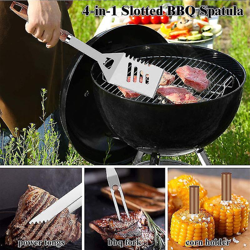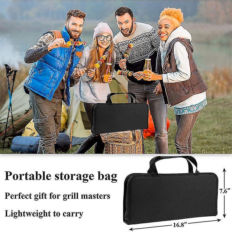 PREMIUM MATERIAL: The BBQ accessories set is made of high quality stainless steel, which is heat resistant, corrosion resistant, durable, will not bend or tear, and is easy to clean, making the grilling process safer and easier, ensuring a perfect grilling experience. All our grilling tools are built to last for many years Size:17.32 x 7.87 x 2.36 inchesPORTABLE STORAGE BAG, EASY TO CLEAN AND USE: For your outdoor BBQ accessories set we offer a large BBQ cutlery box in which you can perfectly store all your BBQ tools. Easy to use, save space and prevent missing tools. Our BBQ tools are dishwasher safe, saving time on cleaning, and BBQ accessories with a hook design that can be hung on the stove or in the kitchen.PERFECT STYLISH GIFT: The shiny stainless steel finish of the grill accessories will make any grill master fall in love, making it an ideal gift set for grill lovers, cooks and campers. BBQ set is the perfect gift for family and friends for Christmas, Father's Day, Birthday, Halloween, Thanksgiving, Christmas and other important holidaysSATISFACTION GUARANTEE: We trust you will love our BBQ accessories tool set.
