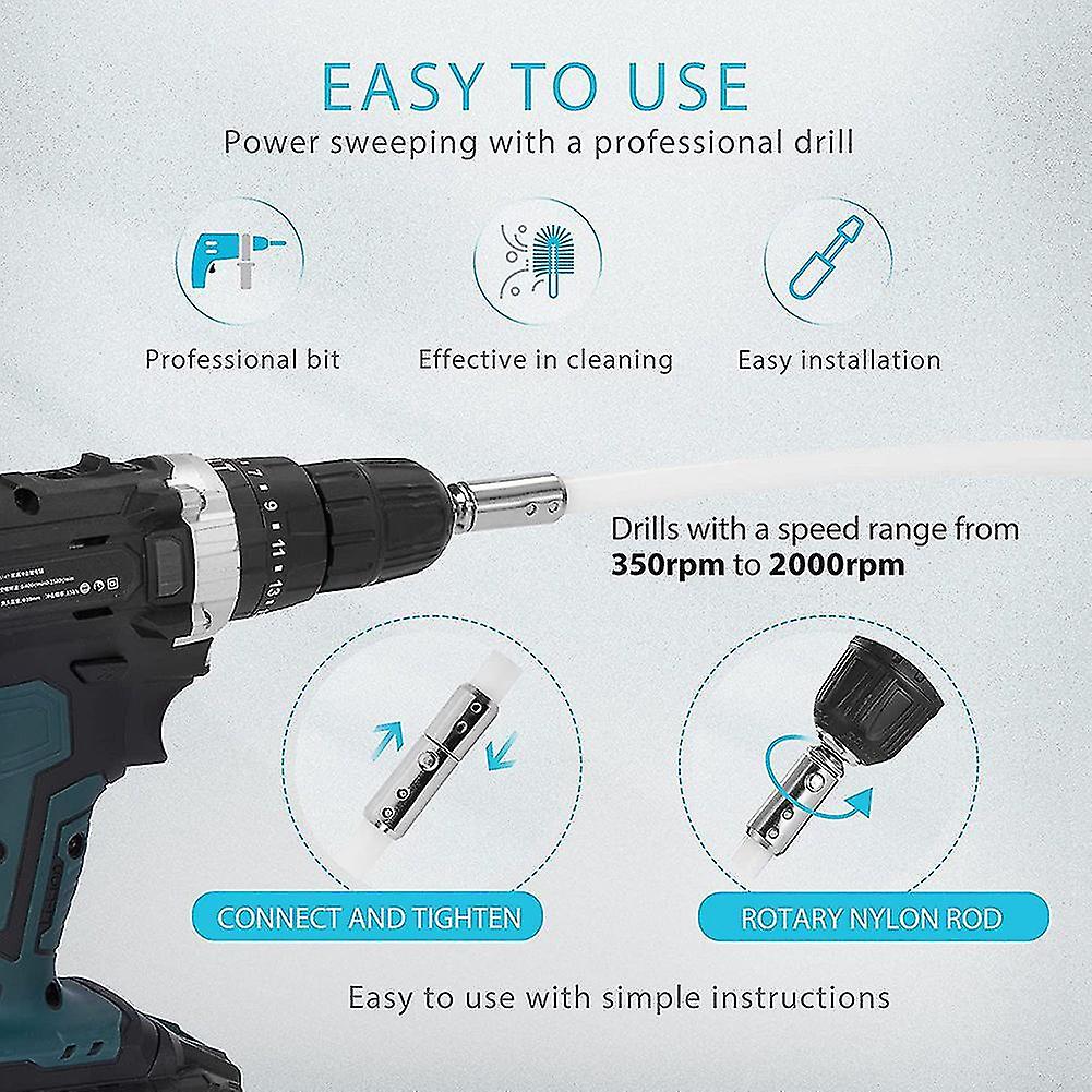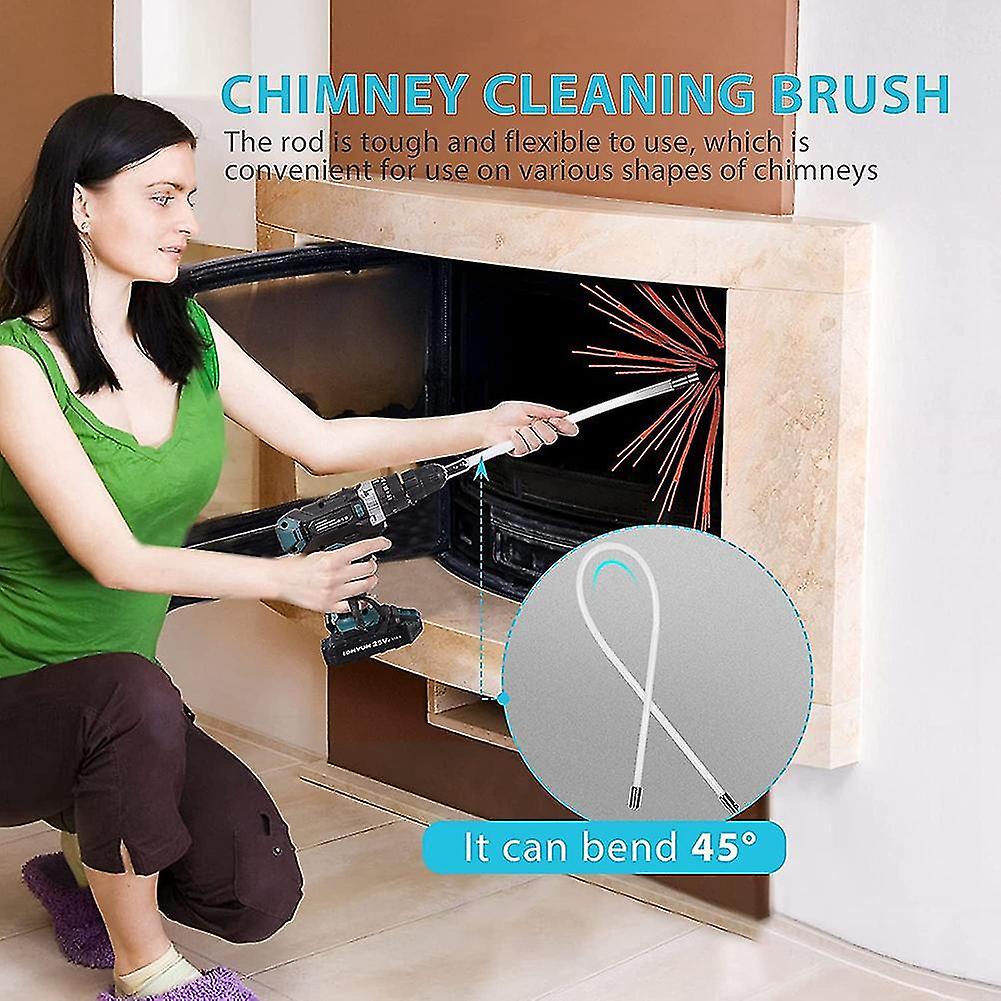 EASY TO USE & EFFECTIVE IN CLEANING - A powerful sweep with a professional drill will soon give your chimney a new look; Snap-spring design connection makes it easy to install and disassemble, and the connection will not be broken when rotated left or rightHIGH QUALITY & DURABLE - Being elastic and chemically resistant; The mane of the chimney brush is made of solid nylon cord with a special sharp rectangular shape at the edge, which makes sweeping more efficientCLEAN FROM THE BOTTOM UP & SAFETY - The chimney sweep can achieve bottom-up cleaning, avoiding from going inside the chimney; It not only saves a great deal of money but also is safer and more reliable than traditional cleaning methods, saving time and effortOUTSTANDING EFFECT - It can remove creosote and other debris from the chimney, effectively preventing fires and improving ventilation, which helps the fireplace burn and saves fuel; This easy-to-use chimney cleaner is one of the best ways to avoid a chimney fireWIDE APPLICATION - Our flexible rods can easily clean around tight corners and can be bent up to 45-degree angles to reach right angles; Suitable for metal flues and brick chimneys in different diameters and shapes, even with stainless steel liners or dampers insideThe nylon rod can be bent up to 45 degrees, which is convenient for using in various shapes of chimneys (However, it is recommended to bend the rod greater than 90 degrees for longer life).Use drills with a speed range from 350rpm to 2000rpm., recommending for 24V and above DC power, or 500W and above AC power.Colour:blackMaterial:Nylon + metalPackage Contents:1 set * dryer vent cleaner kitOnly the above package content, other products are not included.Note: Light and different displays may cause the color of the item in the picture a little different from the real thing. The measurement allowed error is +/- 1-3cm.