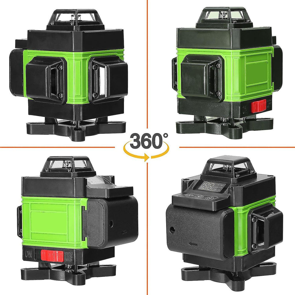 This is a kind of fine quality level instrument, 4D 16 lines for finer positioning, with self-leveling system, flexibility and stability. Provides accurate horizontal and vertical datum for indoor construction stakeout and calibration, easy to operate, and versatile. Comes with one extension bar, which is made of thicken aluminum alloy material, 3-heights adjustable, suitable to most of laser level with 5/8" interface. Suitable for flooring tile layout, paneling, wallpapering, stenciling, wainscoting, finish carpentry, wall stud layout and partition installation. You can have a try.Features:Laser Level:Compact size, lightweight and portable, providing quick and convenient mobility and storage with the carrying box.Output 16 laser lines separately or simultaneously for finer positioning, with 3?? self-leveling system, flexibility and stability.Using fine quality laser diodes and high p-recision conical mirrors, the lase lines emitted is fine and bright with high accuracy, and the brightness is adjustable.Equipped with self-test calibration function, ??3?? automatic leveling, but if the angle is over 3??, the laser light will keep blinking and the laser level will make a beep sound to reminding you to reset them on a flat ground.LCD display design, you can see the battery remaining capacity clearly.Push button design, push right to open it, push left to close it.Touching buttons design, horizontal line, vertical line and tilt line with a clearly division.The button is wear resistant, with high sensitive to switch the line mode quickly, and with comfortable hand feeling.Press the "OUTDOOR" button for 3 seconds to enter tilt mode then you can place the laser tool at any-angle to project the tilt lines; Press the "OUTDOOR" button shortly or long time press "H" or "V" button, you can adjust the laser brightness according to the working condition freely.Comes with one remote controller, "V"=vertical line, "H"=horizontal line, and you can adjust the brightness of laser light easily by press the "+"or "-" button.Scanning QR code on the back of remote controller to download cellphone APP, convenient to control the level machine.The laser level is controlled by the APP through BT connection, and also has electric quantity display, laser light brightness adjustable and voice control function.The T-shape bracket with 7mm wall mounted distance, which has 360?? rotatable base, and equipped with fine adjustment mechanism, can make the machine quickly find the target (1/4 inch screw size).With 360?? rotatable base, with 1/4 inch thread, for easy connected to 1/4 inch thread tripod to adjust the working height of the machine.1/4 inch to 5/8 inch thread adapter for easy connection, it can be used with 5/8inch thread tripod to adjust the working height of the machine.The laser level lifting bracket, height adjustable, anti-slip texture design for increasing friction, more stable placement.Waterproof and dustproof, suitable for both indoor and outdoor use, continuous laser pulsed laser.1.5m Tripod Stand:Made of thicken aluminum alloy material, firm with fine load-bearing, not easy to deformed and not easy to break.Three heights adjustable, you can adjust according to your demands easily.Equipped with bubble-level to help you to check whether the tripod is horizontal or not.Equipped with rocking bar to adjust to height of the tripod, smooth and effort saving.With fixed plectrum to control to extend length to lock it tightly.Suitable to most of laser level with 5/8" interface.Note:The laser output maker is located on the output hole.Do not stare directly at the laser light.Do not disassemble the instrument and perform internal repairs by yourself.This instrument meets the laser radiation safety rating standard.Specifications:Name: Laser LevelMain material: plastics+metalType: blue-EU Plug, blue-US Plug, blue-UK Plug, green-EU Plug, green-US Plug, green-UK Plug (optional)Laser class: class 2, output power 1mWLine type: 4 * 360??Wavelength: 532nm (Green)Battery: 2 * rechargeable lithium battery, 3.7V, 2400mAh (included)Horizontal/vertical: ??0.2mm/10mAutomatic leveling-range: ??3??Working temperature: -5 to 50Waterproof grade: IP54Working distance: 25mTripod stand interface: 5/8"Level machine: 130 * 102 * 134mm / 5.12 * 4.02 * 5.28inTripod base size: 96 * 82 * 72mm / 3.78 * 3.23 * 2.83inWall-mounted bracket size: 161 * 71 * 89mm / 6.34 * 2.80 * 3.50inIron-board: 100 * 60 * 12mm / 3.94 * 2.36 * 1.47inLif