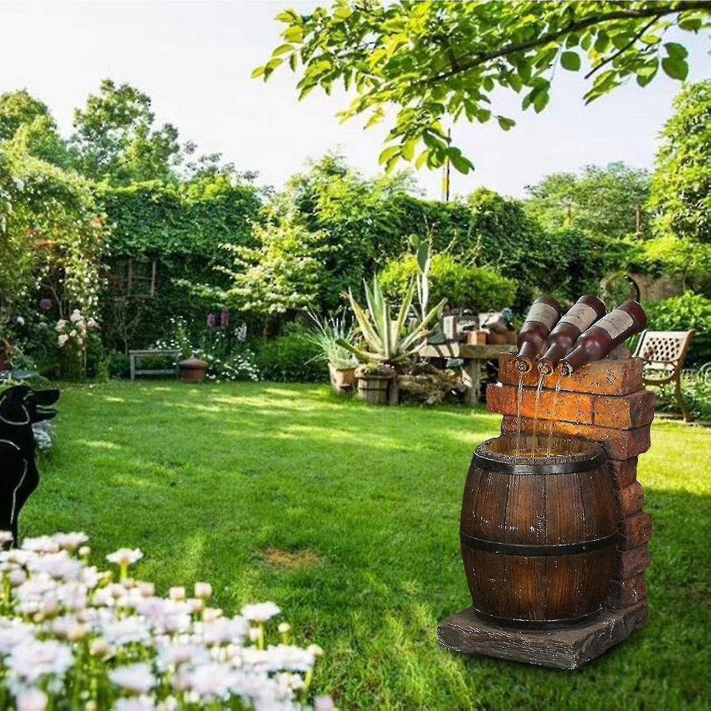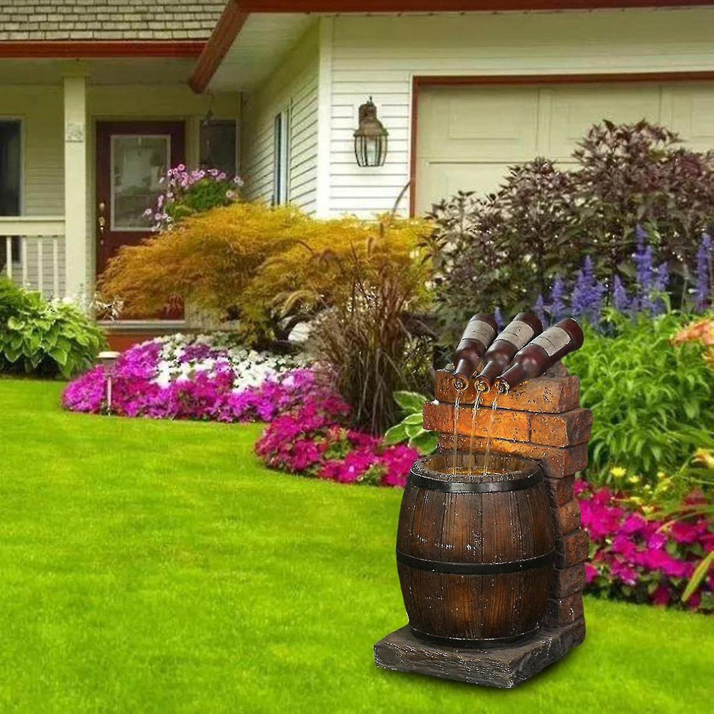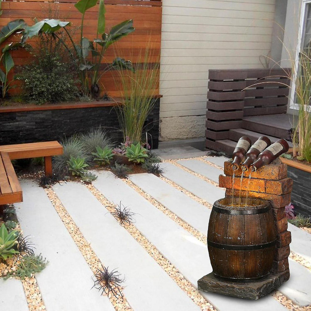 Resin Wine Bottle And Barrel Figurine Garden Water Fountain Sculpture Patio Decor 10x10x20cm