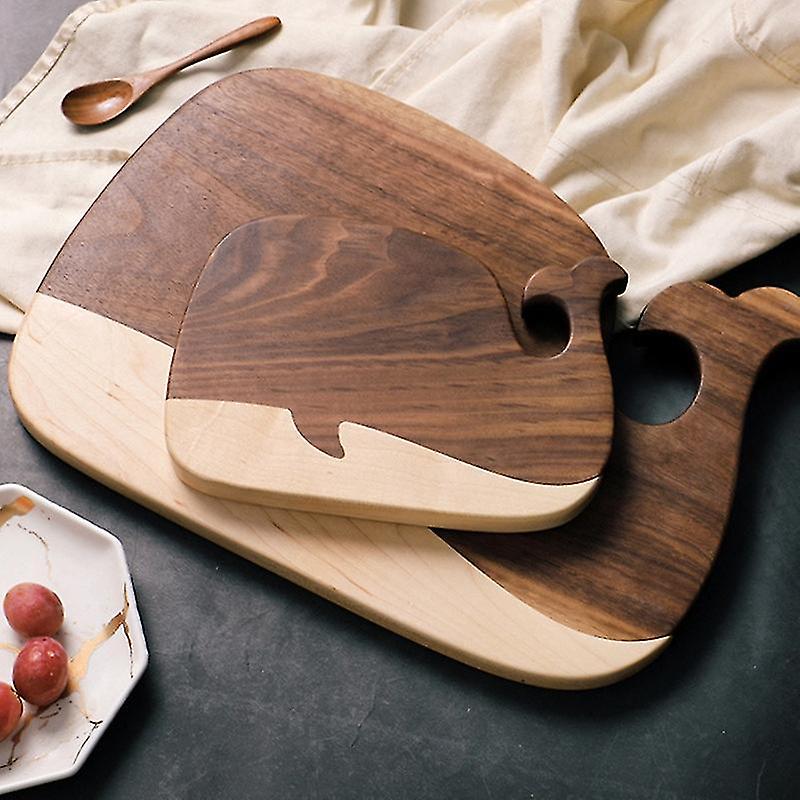 The whale-shaped solid wood cutting board can also be used as a food tray.Creative splicing of solid wood, made of wood. Natural texture, moderate hardness, durable.The surface is treated with wood wax oil, which is delicate and smooth to the Press and retains the wood feel. After purchase, rinse it with water and use it.The fish tail hook design can be hung for storage when not in use, draining water and mildew, saving space.Colour:As shownMaterial:woodSize:35.5 x 24.7cmPackage Contents:1 * cutting boardOnly the above package content, other products are not included.Note: Light shooting and different displays may cause the color of the item in the picture a little different from the real thing. The measurement allowed error is +/- 1-3cm.