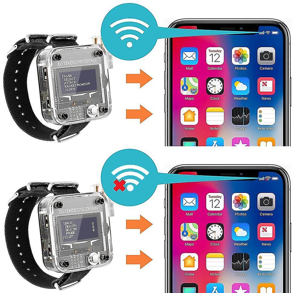 Watch V3, with better performance and appearance than V1&V2, is wrapped by the 3D print transparent case, moreover, equiped with upgraded software system, which is easier to operate. WiFi Test Tool: installed with the latest ESP8266 Deauther software, the deauther watch can perform different secure tests for your WiFi networks, equiped with 5dB FPC antenna. NOTE: ESP8266 supports 2.4GHz only. Extensible: Deauther wathch V3 also can be used to develop your own software, it is indeed a ESP8266 development board, easy to operate. LONG WORKING TIME: for DSTIKE Deauther watch has a built-in an 800mAh battery, the maximum working time of the WiFi Deauther wristband reaches 8 hours, also the battery can be charged while in use. Moreover, the watch is equiped with OLED display and a 3-way momentary slide switch. NOTE: the wifi deauther watch can be used only for testing and educational purposes on your own devices Material:Metal + Plastic colour:black Package Contents: 1 * WiFi Deauther Watch V3 ESP8266 Programmable Development Board Only the above package content, other products are not included. Note: Light and different displays may cause the color of the item in the picture a little different from the real thing. The measurement allowed error is +/- 1-3cm.