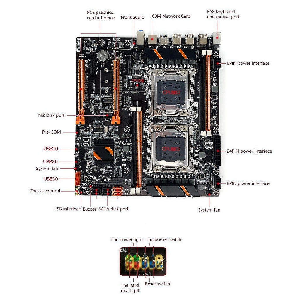 CPU platform, CPU socket LGA 2011, supports 2 CPUs at the same time. Memory type DDR3 1866/1600/1333/1066MHz, memory slot 4xDDR3 DIMM. 2x8Pin power suppy interface, 1x24Pin power supply interface.