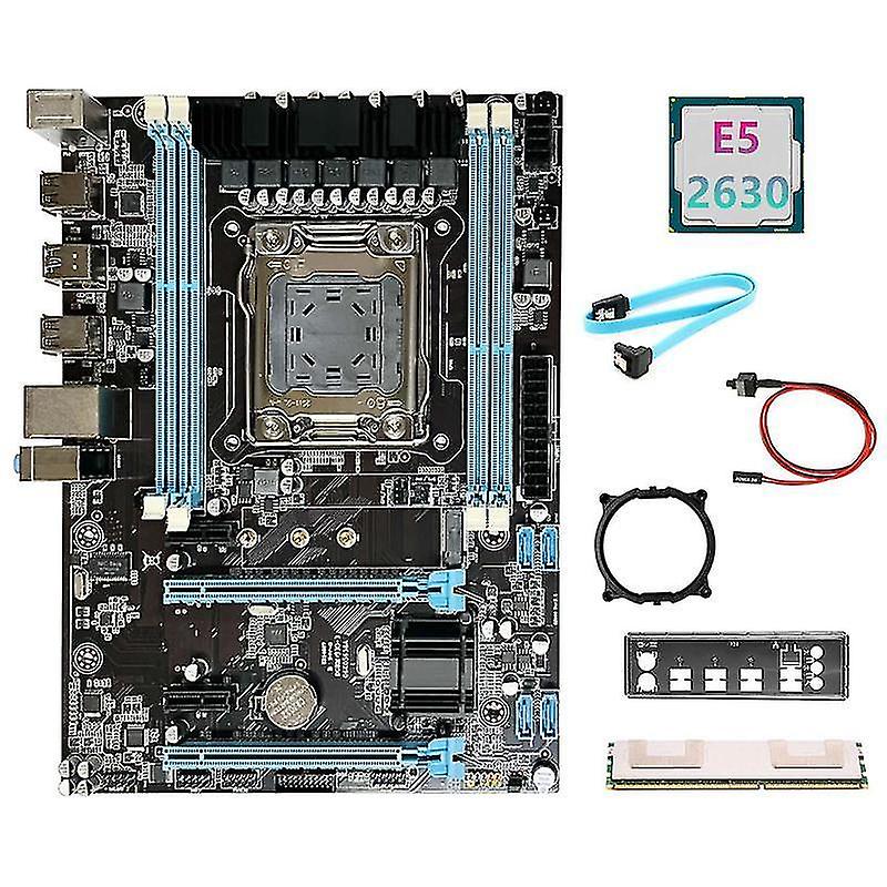 X79 motherboard, designed for gaming and household, with LGA2011 Socket, 2*PCI E X16 Slot, 2*PCI E X1 Slot, support desktop and RECC memory Ram High-speed M.2 NVME interface: Onboard high-speed interface, capacity and faster read and write speed Support CPU: For Xeon E5 2620, E5 2630, E5 2640, E5 2650, E5 2660, E5 2670, E5 2680...V1 V2 CPU series (not included). Motherboard Model: X79; Chip: Q67 chipset; Memory slot: 4* DDR3 RAM slot; Support maximum memory: 4*16G DDR3, of 64G Supported memory types: Desktop/Reg ecc (RECC memory cannot work with desktop memory, there is a compatibility issue.) Sound card: 5.1 channel Graphics card slot: PCI-E16X*2 Expansion slot: 1*M.2 NVME slot 2*PCI-E X16 slot 2*PCI-E X1 slot 4*SATA Power: 1*8Pin, 1*24Pin I/O: PS/2 interface 6*USB2.0 interface 2*USB3.0 interface 1*RJ45 Gigabit LAN 1*Audio interface The appearance and color of different batches of products may be different, which will not affect the use Type:X79 Motherboard Type:X79 Desktop Motherboard Type:X79 Gaming Motherboard color:Black Material:PCB size: 26 x 19cm Package Contents: 1 x Motherboard 1 x E5 2630 CPU 1 x DDR3 4G RECC 1333Mhz RAM(random color and random appearance, cannot select specified color and appearance) 1 x SATA cable(random color and random appearance, cannot select specified color and appearance) 1 x Switch Cable(Random Color, cannot select specified color) 1 x Baffle(random color and random appearance, cannot select specified color and appearance) 1 x Bracket(random color and random appearance, cannot select specified color and appearance) Only the above package content, other products are not included. Note: Light reflection and different displays may cause the color of the item in the a little different from the real thing. The measurement allowed error is +/- 1-3cm.