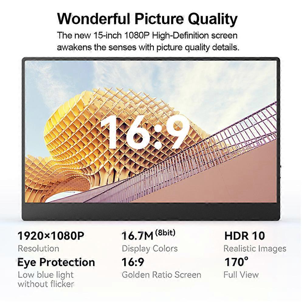 15Inch Portable Monitor FHD1080P IPS Gaming Monitor Built-in Dual Speakers 170?? Wide View External Display for Laptop/PC/Smartphones