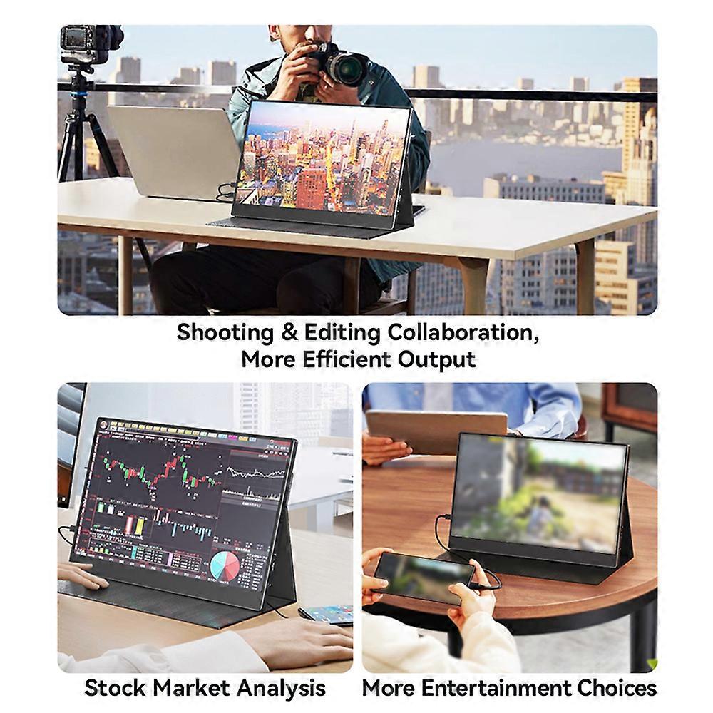 1??High-Resolution Display: With a resolution of 1920x1080 pixels, it delivers crisp, clear images and vibrant colors, and features IPS technology, ensuring consistent and accurate colors from all viewing angles, experience stunning visuals with our monitor. 2??Portable Design: Our external monitor is designed with convenience and versatility in mind. With its slim and lightweight design, it can easily fit into your backpack or suitcase, making it great for business trips, vacations, or even just a day at the office. 3??Versatile Connectivity: Features Multimedia Interface, headphones, and Type-C ports, allowing you to connect it to your laptop, PC, smartphone, game console, and more. meaning you can start using it without any complicated setup or installation. 4??Superior Viewing: Delivers with 170\u0026deg; viewing angles, 1000:1 contrast ratio, 16: 9 aspect ratio, presents a vivid image and truly immersive viewing experience. It also can effectively reduce blue light radiation damage, no flickering, and eye care for a long time. 5??Enhanced Productivity: With our portable monitor, you can boost your productivity wherever you go. It provides extra screen space, allowing you to multitask/documents/spreadsheets more efficiently, which help you get more done in less time.
