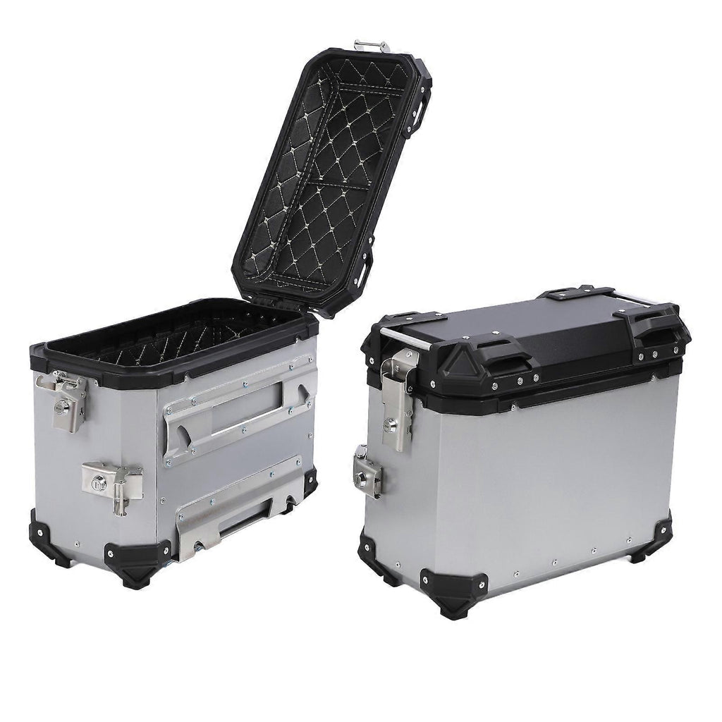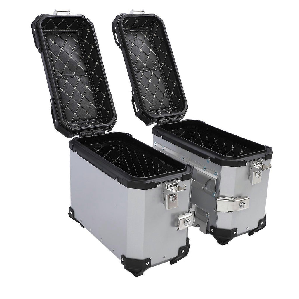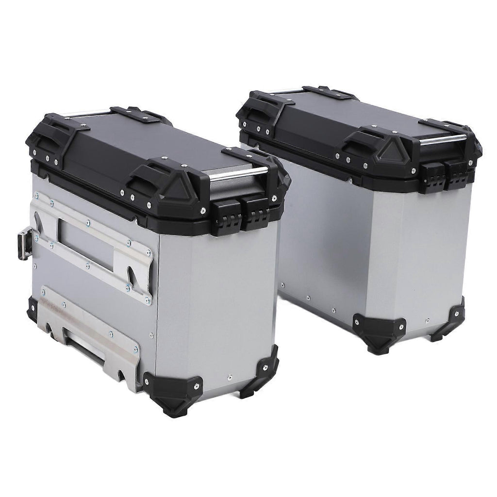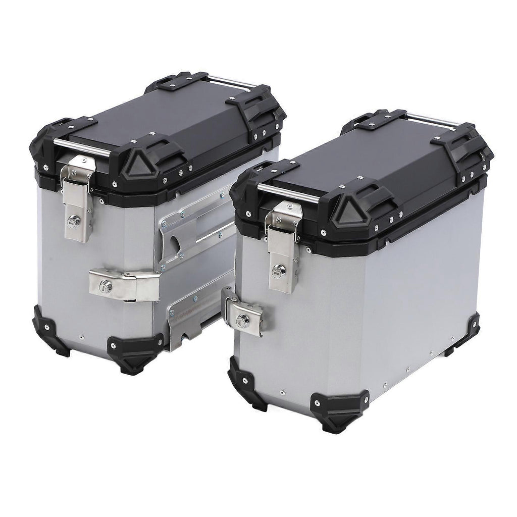2PCS Motorcycle Side Box 35L Large Capacity Aluminum Alloy Hard Saddlebag with Safety Lock and Handle Replacement for Suzuki Silver
