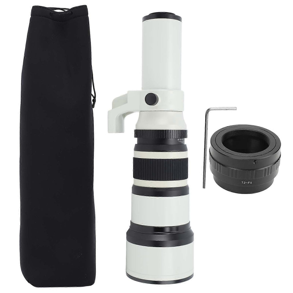 500mm F6.3 Manual Focus Telephoto Lens with T2 FX Adapter Ring Accuracy Scale 500mm F6.3 Telephoto Lens for Natural Scenery White