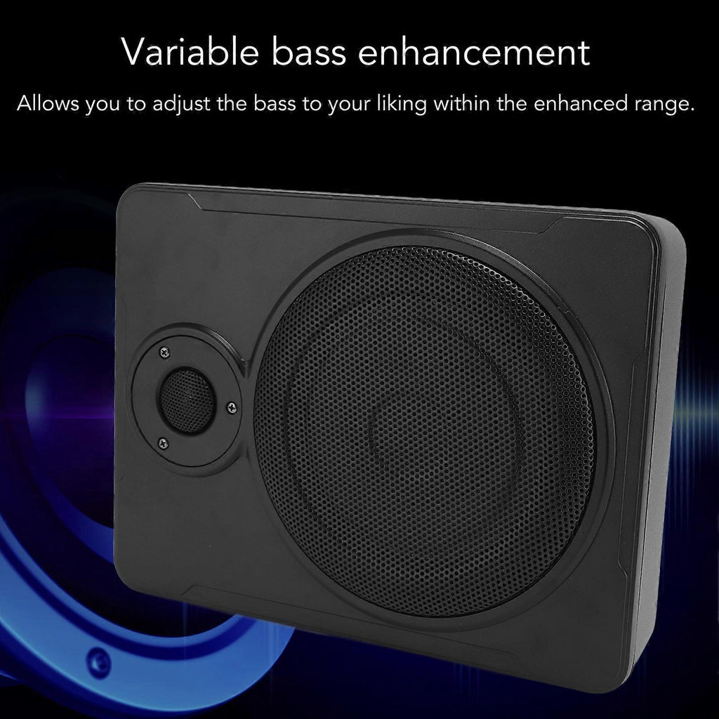 1??Space Saving: The car subwoofer combines the amplifier and subwoofer into one, effectively saving space in your vehicle. Enjoy powerful bass without sacrificing valuable interior space. 2??Pulse Width Modulation: The subwoofer utilizes PWM technology to eliminate current sensing losses and secondary feedback circuits, allowing for precise control of output voltage and current, ensures optimal performance and efficiency. 3??Variable Low Pass Filter: The subwoofer features a variable low pass filter that eliminates all notes below the set filter frequency, allows for customizable sound tuning and ensures that only the desired frequencies are produced. 4??Variable Bass Boost: Adjust the bass to your preferences within the enhancement range. The subwoofer provides subtle rumble, allows you to tailor the low end sound to your liking. 5??Protective Speaker Cover: The subwoofer comes with a high strength protective cover that effectively protecting the speaker, ensures the longevity and durability of the subwoofer, protecting it from damage and wear.