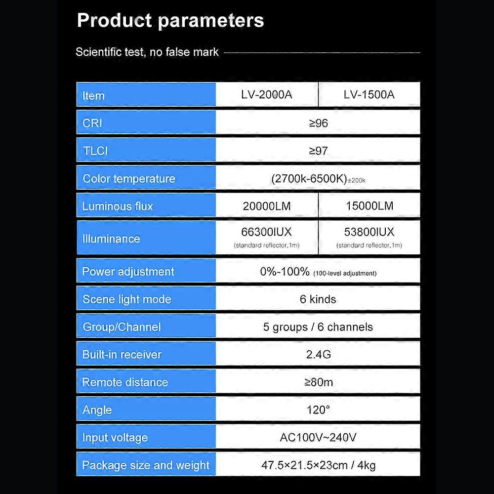 Illuminate your creative projects with the NiceFoto LED Video Light, a state-of-the-art studio continuous light designed for both amateur and professional photographers and videographers. This LED studio light offers unparalleled flexibility and performance, ensuring your work stands out with exceptional quality. Explore the standout features of this versatile lighting solution: Detachable Control Panel: Experience seamless operation with the built-in 2.4G receiver remote control and an intuitive, game-like control panel. This setup allows for quick and efficient adjustments, giving you the freedom to focus on capturing the perfect shot without any hassle. Advanced Heat Dissipation: Engineered with an industrial-grade Nano-heat pipe heat dissipation structure, this LED light maintains consistent lighting effects even during prolonged use. This design enhances the durability and lifespan of the lamp beads, ensuring reliable performance for all your projects. Adaptable and Compatible Design: The U-shaped bracket offers exceptional versatility with its rotational capabilities, allowing precise positioning of the light. Its standard Bowens mount ensures compatibility with a wide range of light accessories, making it adaptable to various shooting setups. Silent Mode: Activate the silent mode to eliminate operational noise, creating a distraction-free environment ideal for video production. This feature is perfect for content creators who require a quiet setting, ensuring high-quality audio in your recordings without interference. Exceptional Color Accuracy: With a high CRI of 96 and TLCL of 97, this studio photography light guarantees accurate color reproduction. Achieve natural-looking results with true-to-life colors, ensuring your visuals are as vivid and precise as your creative vision. Versatile Color Temperature and Lighting Modes: The adjustable color temperature range from 2700K to 6500K caters to all your fundamental shooting needs. Additionally, the light offers six unique lighting effects, enabling you to mimic various real-life scenarios and add depth to your creative projects. Powerful Illumination: Delivering a robust 200W power output, this LED video light achieves a superior brightness of 66300 lux at 1 meter with a standard reflector. With adjustable brightness from 0-100%, it provides precise control to tailor the lighting to your specific requirements, ensuring optimal results every time. The NiceFoto LED Video Light is an essential tool for any photographer or videographer looking to enhance their studio setup. Its innovative features and user-friendly design make it the perfect choice for achieving professional-grade lighting and stunning visual results in any creative endeavor.