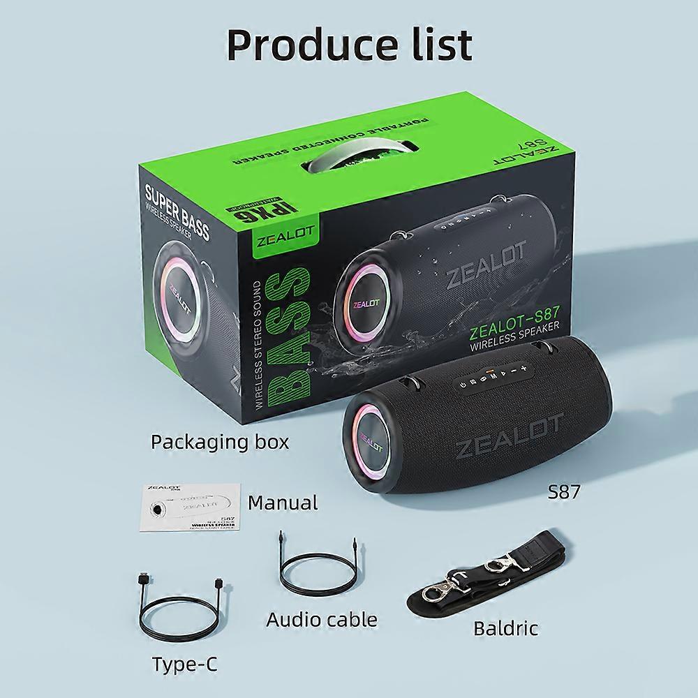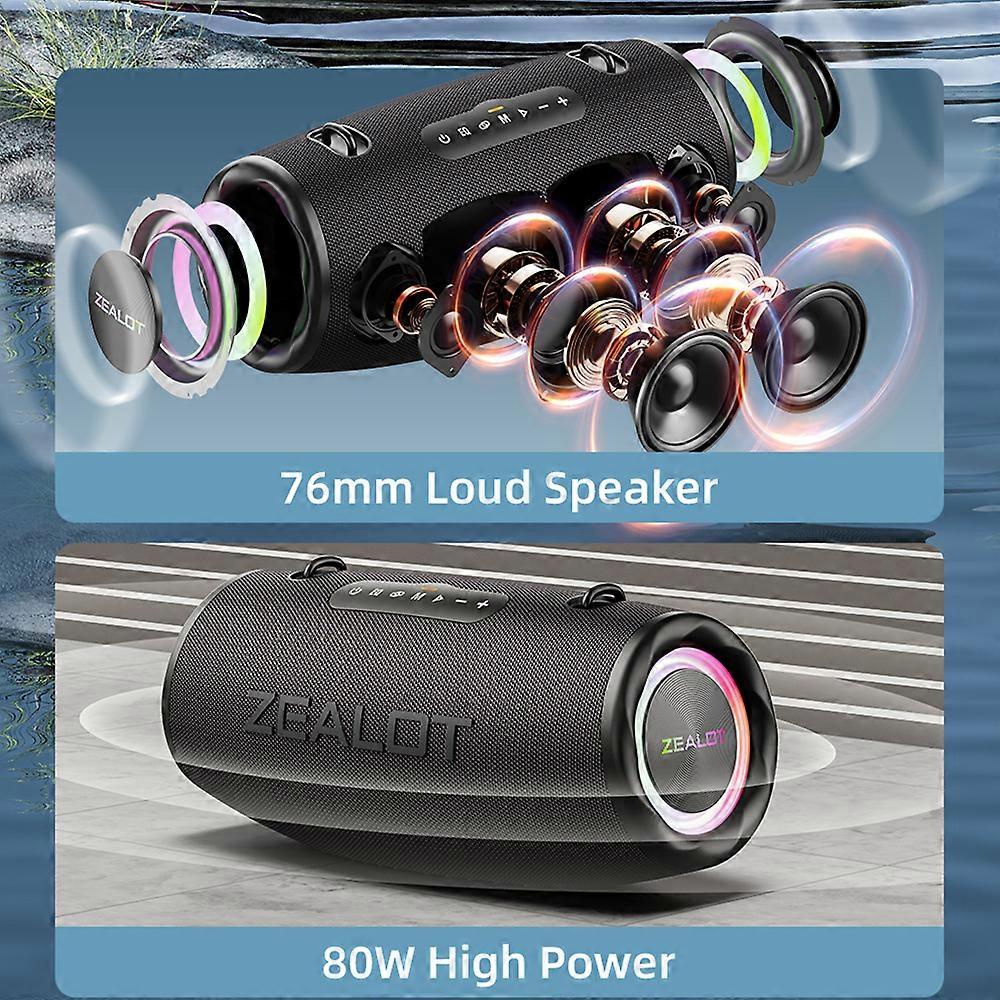 ZEALOT S87 BT Speaker Wireless Stereo Speaker with 80W Booming Sound LED Lights Waterproof Portable Speaker for Outdoors Camping Beach