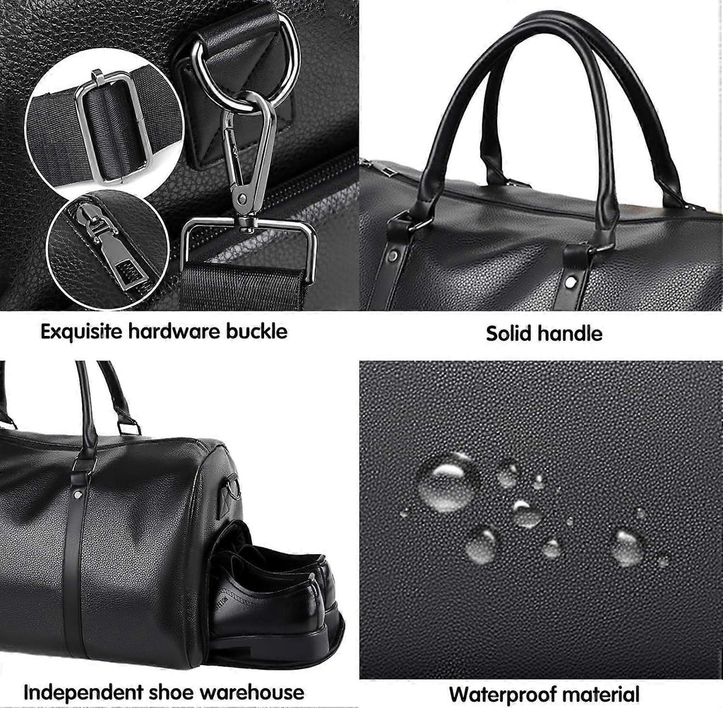 1.Material: Made of high quality water resistant PU leather fabric. lightweight, durable, perfect for men to use in daily travel or business trip. 2.Dimensions: 1899.4 in(LWH), the weekender bag is enough for clothes, iPad, 14inch laptop and Other traveling necessities. 3.Dry Wet Separated Bag: The high density water resistant material can help you to separate dry items and wet items, you can put toiletries, wet clothes or towel in this dry wet bag. 4.Any Occasions: Our Duffel Bag is a perfect choice for business trips, air travel, sports activity, school, camping, hiking and many outdoor activities. It can also be used as a gift, suitable for family, friends and partners.