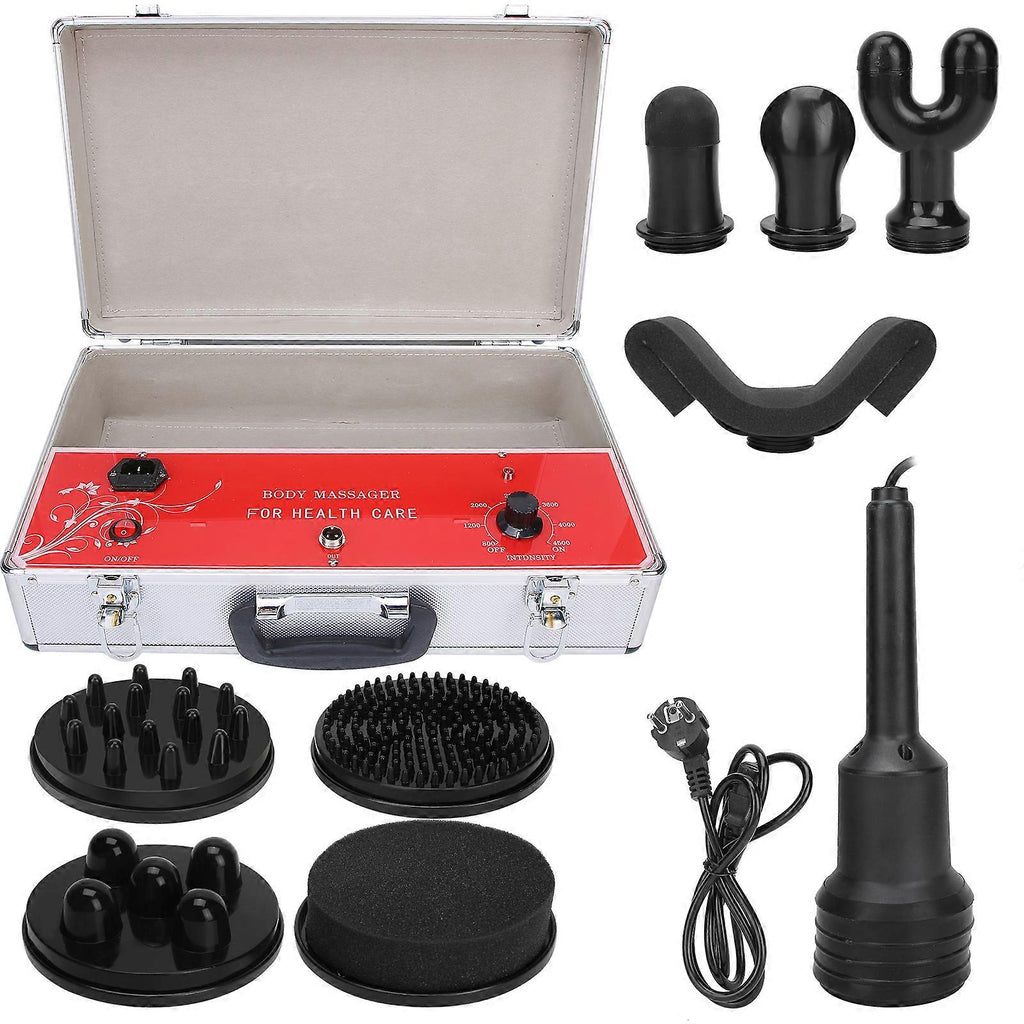 Feature:1. Beautiful appearance, intelligent working program, simple and convenient operation, high efficiency and durable to use.2. A variety of massage heads included of the package to meet the needs of any normal position of the body.3. Cylindrical head massage can relieve muscle tension, speed 24004000 r / min of vibration can be effective use to achieve weight loss.4. Can be applied to anticellulite, body slimming, weight loss, has good massage effect to make you feel relax.5. Oscillation frequency of 10Hz60Hz (800 r/min to 4500 r/min), continuously adjustable to meet different demands.Specification:Item Type: Push Cellulite MassagerMaterial: Plastic + Stainless Steel Power: 80WOscillation Frequency: 10Hz-60Hz (800 r/min to 4500 r/min), continuously adjustableWorking Noise: 60dBHow to use: Please hanging the main equipment and vibrating hose on the bracket first, please read the note and the buttons need to select the vibration strength, speed to operate. various types of massage may be necessary, removal of the replacement parts.Cylindrical head massage is to stimulate the muscle skills in a "massage therapist's fingers" in the painful area with the top material extrusion and vibration to reduce pain, can relieve muscle tension, speed 2400-4000 r / min of vibration can be effective use to achieve weight loss.Shower massage heads aimed rough, more wrinkled skin and soft fat massage use, may also assist in bonding surface and depth of fibrous tissue, fat elimination. Recommended speed is 1600-2400 r / min.Foam massage head, mainly used on acupoints, including the body and the soles of the feet, the proposed speed of 800 r / min or so. Physical therapy, use disposable sanitary film sets (such as plastic wrap and the like).Hemispherical massage head can be used to the muscles massage acting on the larger sites (such as back massage), exercise the muscles of the lack of passive exercise. In the super-intensity exercise or sport to help prevent muscle fatigue and hardening, to maintain joint flexibility, reduce joint swelling. The same time, at the speed of 2400-4000 r / min of vibration on the fat of the soft parts can be effective, consumption, and help people to lose weight. Relax your muscles.Massage should use a smoothly start or soft massage head, while slow move forward to massage.Notes: 1. Before the preparatory work, do not start the machine, otherwise it will increase the wear rate of vibration massage head. 2. Centrifugal vibration head can not be removed without permission.3. Do not add oil in the rotating shaft or machine. All bearings and shafts are closed and self-lubricating.4. Using soft soap and warm water to clean the outside of machine, do not use cleaning fluid, the accessories can also be cleaned in this way. 5. Avoid to use the machine during the excessive acute inflammation, bleeding area, skin lesions, malignant injury site and menstrual use.6. It can not be used during the thrombophlebitis lymphoid tube.7. Excessive pulmonary hypoxia, pulmonary tuberculosis, pneumothorax, breast cancer and chest wall disease; chest wall abscess and symptoms of infection; infection site; the bleeding site or may be the bleeding site; malignant diseases; thrombophlebitis or lymphangitis; heart parts : varicose veins; disabled patients can not tolerate the shock.8. The patients with bronchus or lung parenchyma infection with sputum use under cautions.9. Pregnant women, women during menstrual period and children are forbidden to use the machine..Package List:1 x Host 8 x Probe 1 x Handle 1 x Manual 1 x Plug